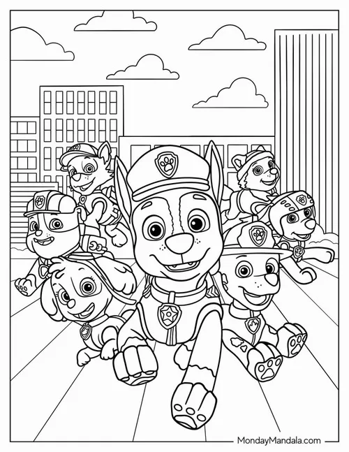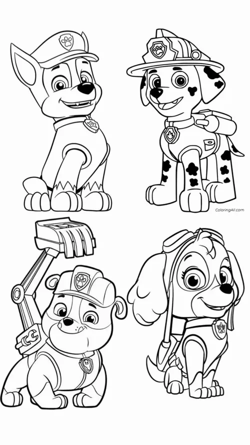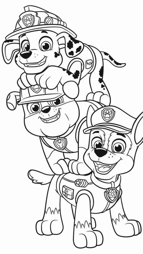 Tranh tô màu chú chó cứu hộ và chó cảnh sát thường lấy cảm hứng từ hình tượng cảnh khuyển, chó nghiệp vụ và đội cứu hộ PAW Patrol như Chase, Marshall, Skye, Rubble, Rocky hay Zuma. Điểm nổi bật của chủ đề này là ngoại hình lanh lợi, ánh mắt thông minh, đồng phục đặc thù theo nhiệm vụ và các phương tiện như xe tuần tra, xe cứu hỏa, trực thăng cứu hộ, cano.