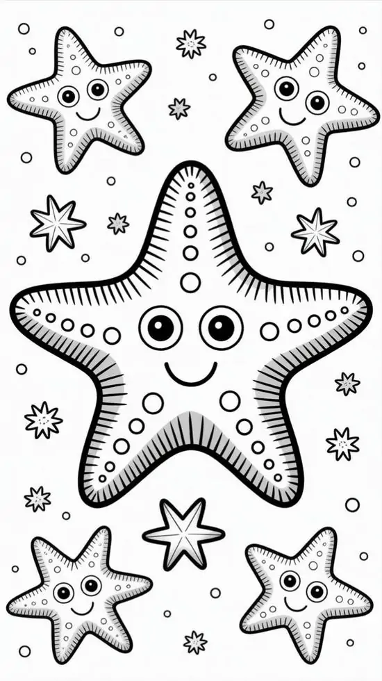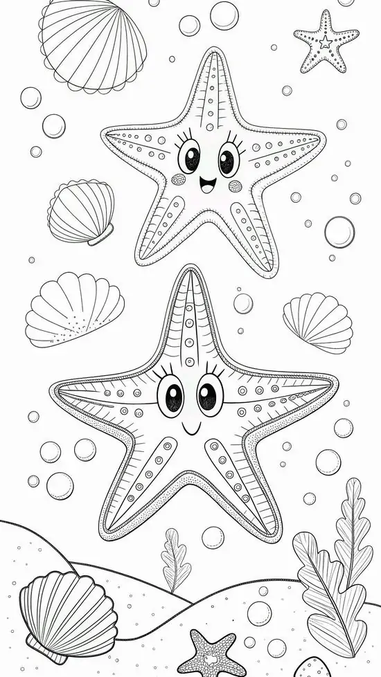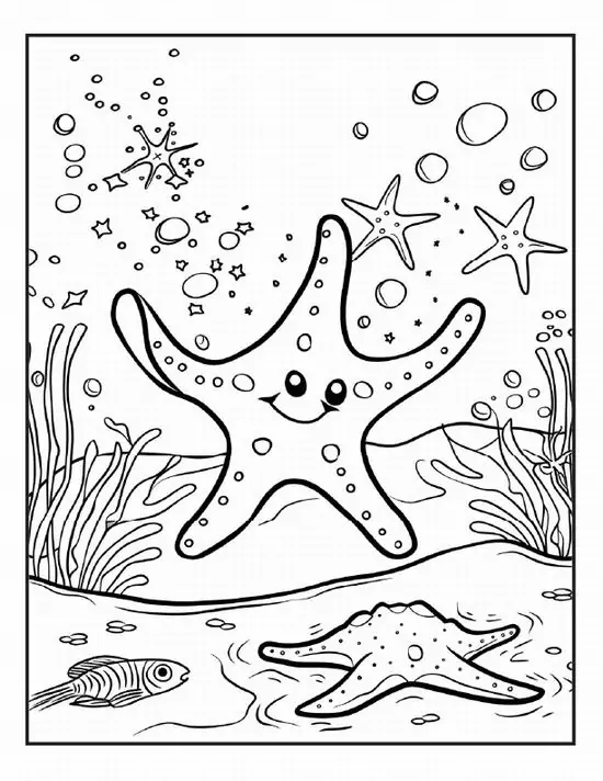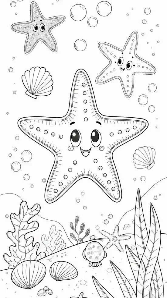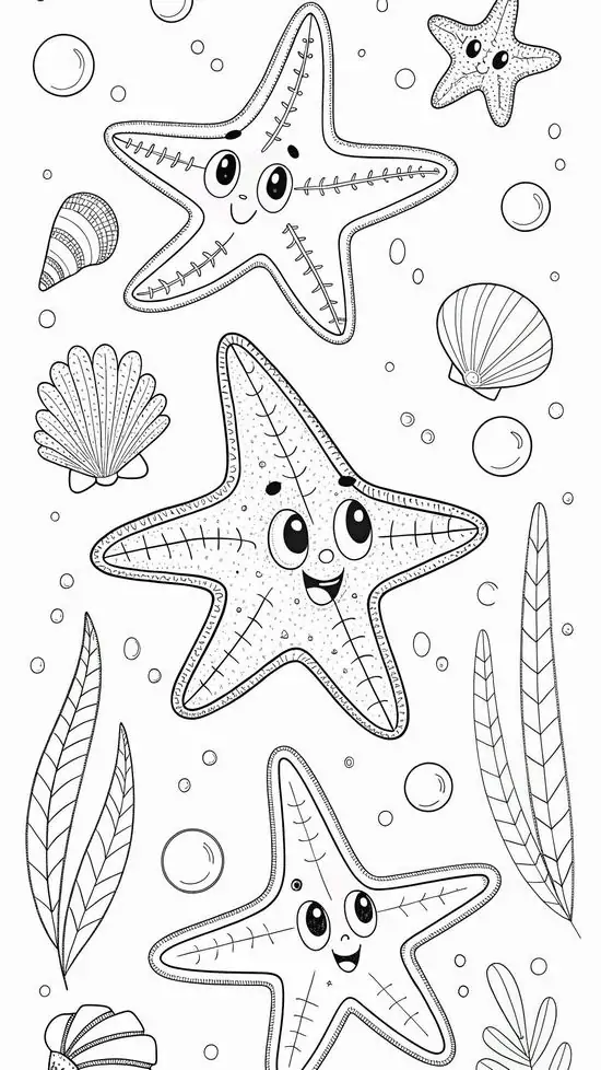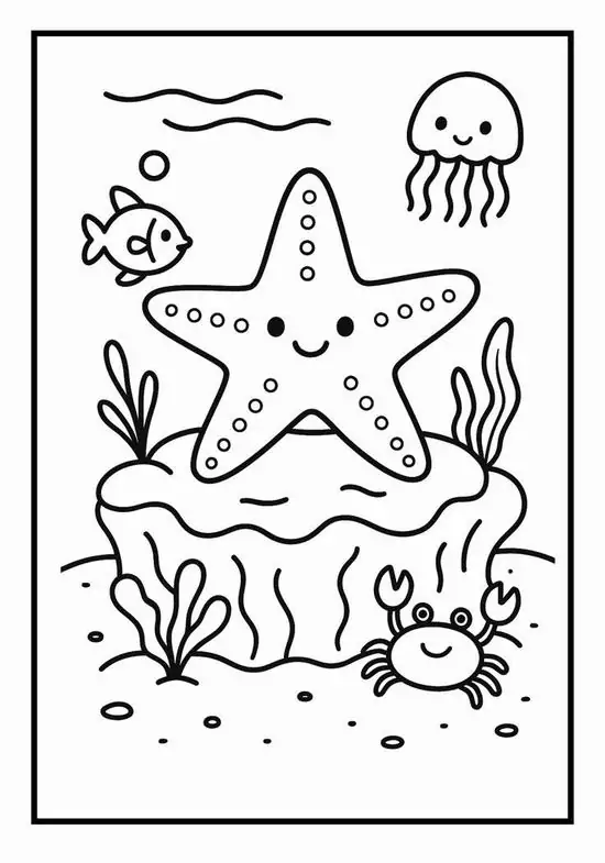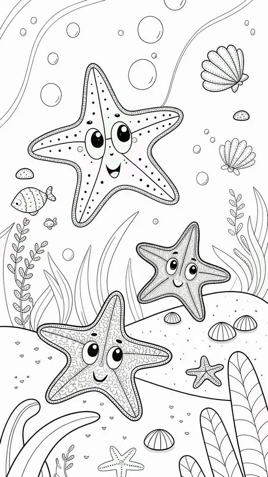 Bộ tranh tô màu sao biển thường gồm nhiều mẫu từ đơn giản đến sinh động, có hình sao biển đứng riêng, sao biển nằm trên cát, cạnh vỏ sò, bên rạn san hô, cùng cua biển, ốc mượn hồn hay cầu gai. Nhờ nét vẽ rõ và khoảng tô thoáng, bộ tranh rất hợp cho bé từ khoảng 3 đến 9 tuổi. Bé nhỏ có thể tập nhận biết hình khối và màu sắc, còn bé lớn hơn sẽ thích phối cảnh biển cả, thêm sáng tạo cho từng trang tranh.