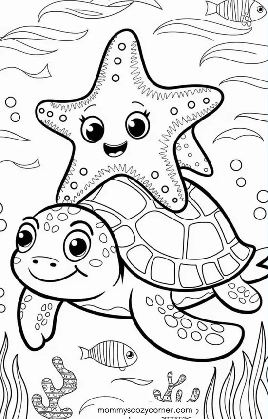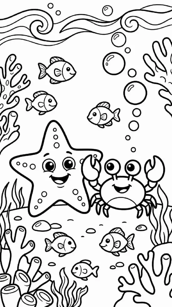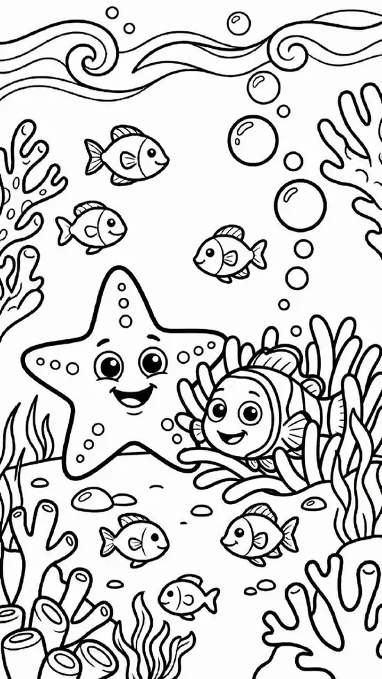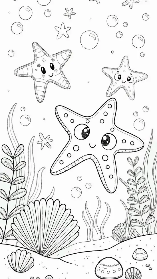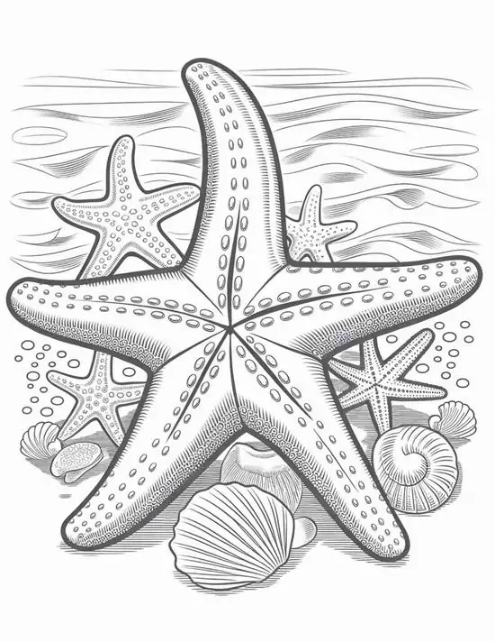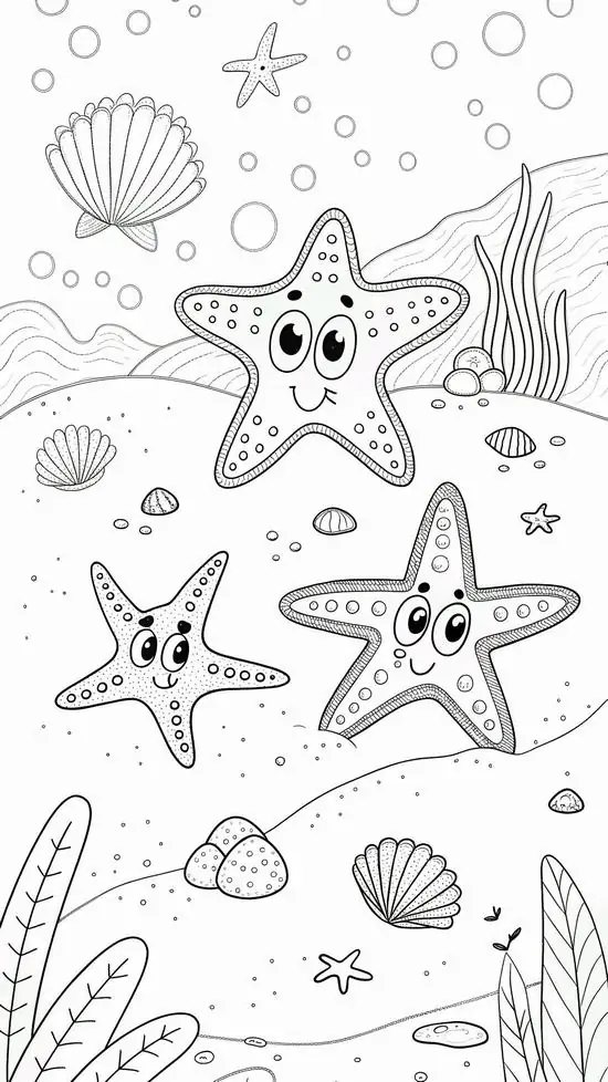Bộ tranh tô màu sao biển thường gồm nhiều mẫu từ đơn giản đến sinh động, có hình sao biển đứng riêng, sao biển nằm trên cát, cạnh vỏ sò, bên rạn san hô, cùng cua biển, ốc mượn hồn hay cầu gai. Nhờ nét vẽ rõ và khoảng tô thoáng, bộ tranh rất hợp cho bé từ khoảng 3 đến 9 tuổi. Bé nhỏ có thể tập nhận biết hình khối và màu sắc, còn bé lớn hơn sẽ thích phối cảnh biển cả, thêm sáng tạo cho từng trang tranh.