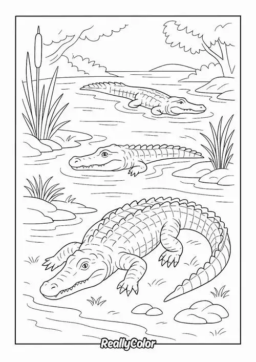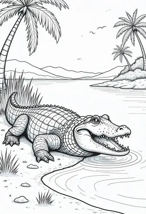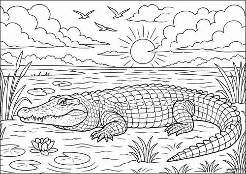 Bộ tranh tô màu cá sấu hợp với những bé thích động vật hoang dã, cảnh sông nước và các loài bò sát mạnh mẽ. Chủ đề này thường hợp bé trai nhiều hơn một chút vì tạo cảm giác ngầu. Với nét vẽ từ đơn giản đến nhiều chi tiết, bộ tranh phù hợp cho bé khoảng 4 đến 9 tuổi.