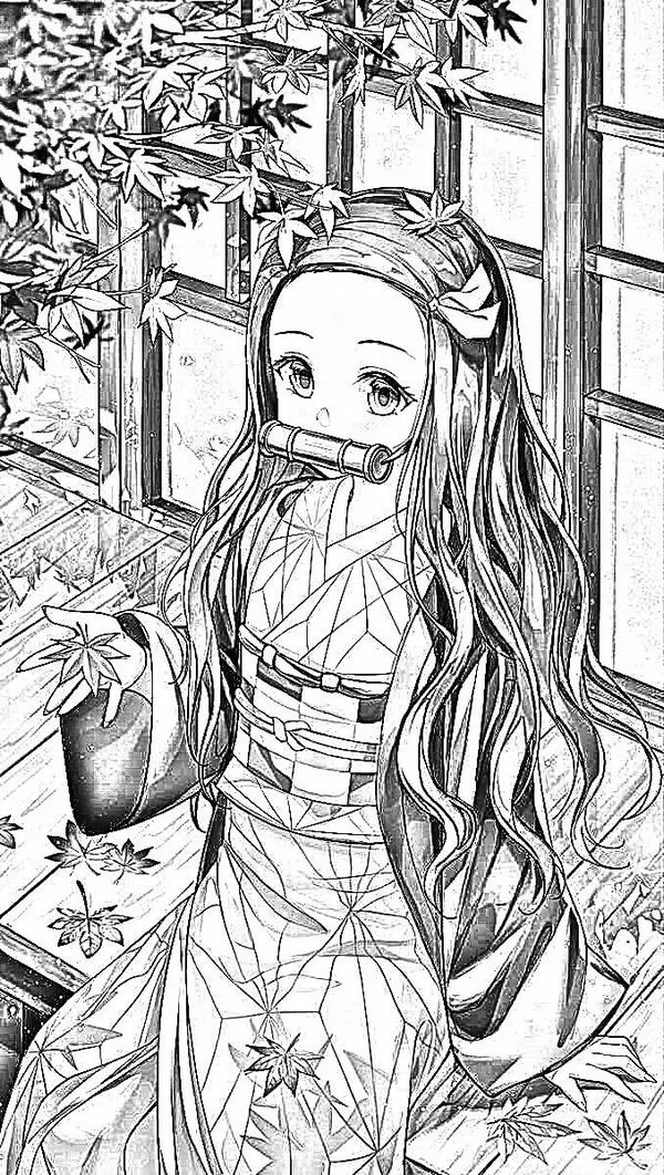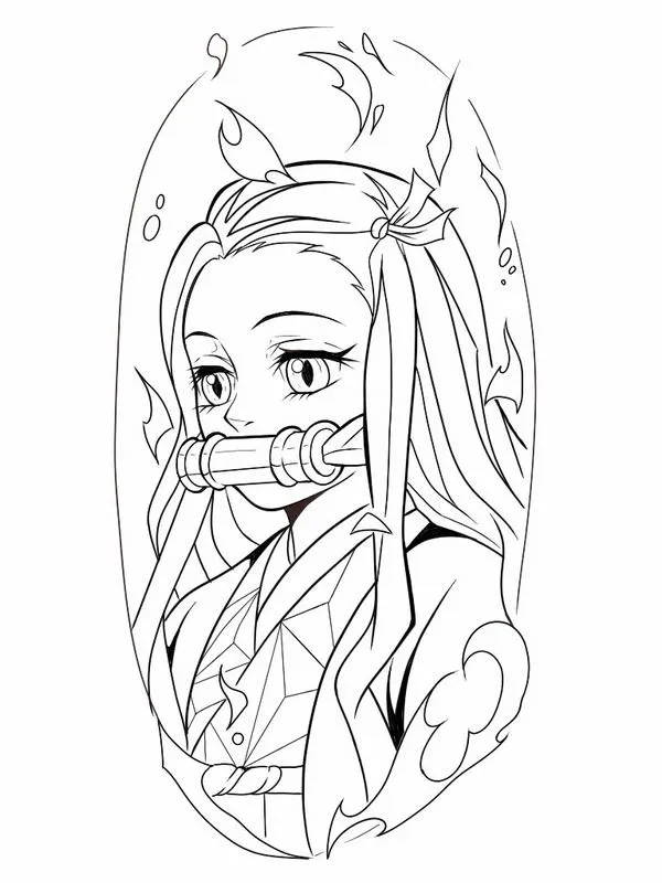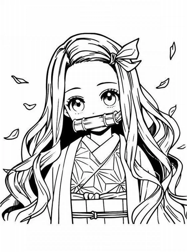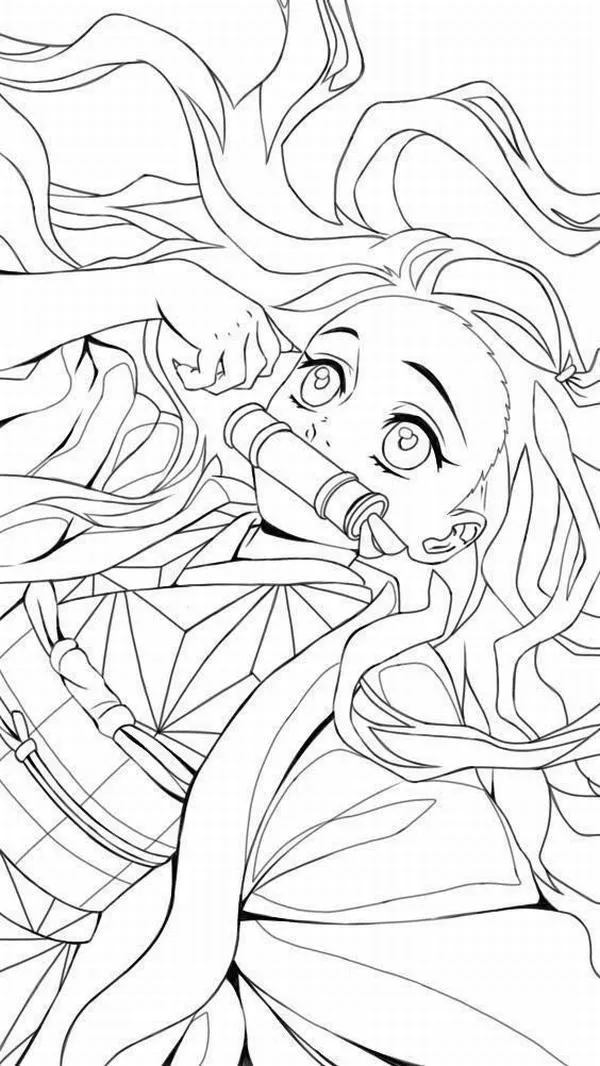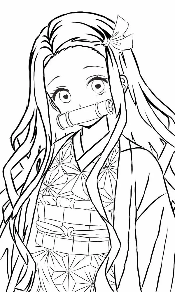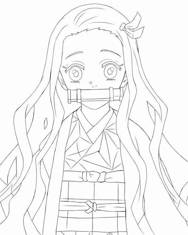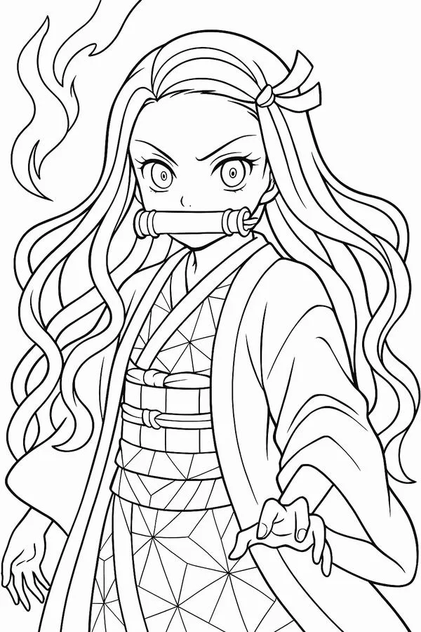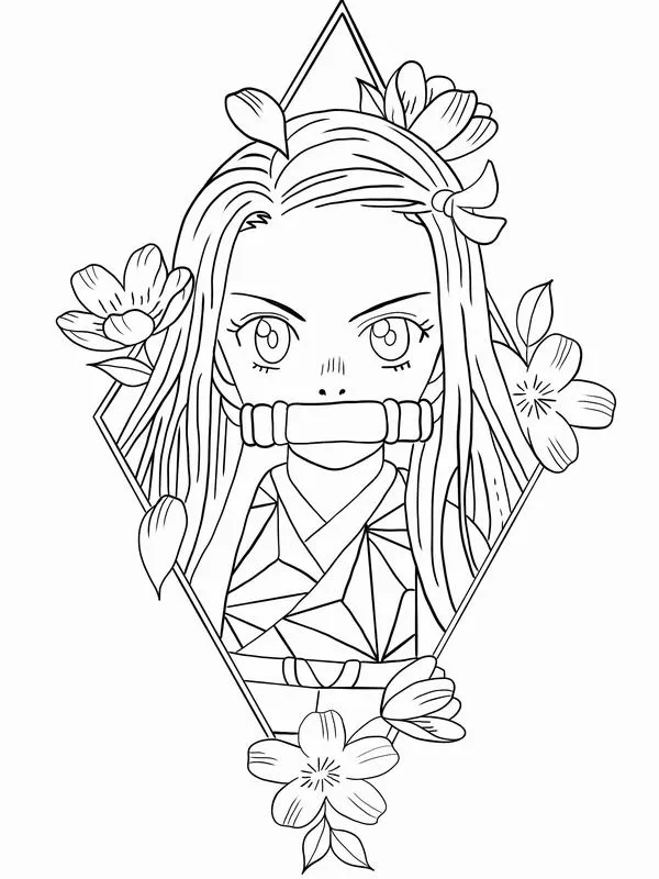 Nezuko Kamado xuất hiện trong Thanh gươm diệt quỷ của Koyoharu Gotouge, nổi bật với hình ảnh em gái Tanjiro bị biến thành quỷ nhưng vẫn giữ lòng nhân hậu. Cô có mái tóc đen dài, ngọn tóc cam, đôi mắt hồng, Kimono hồng họa tiết lá gai, Haori đen và ống tre xanh buộc dây đỏ. Khi lên tranh tô màu của trẻ, Nezuko vừa có nét ngây thơ, vừa có sức mạnh bộc huyết rực lửa rất cuốn.