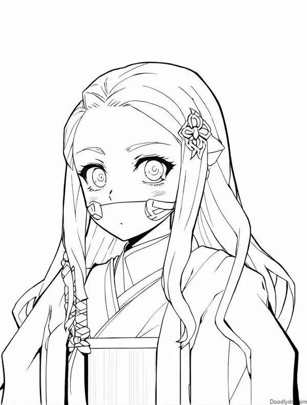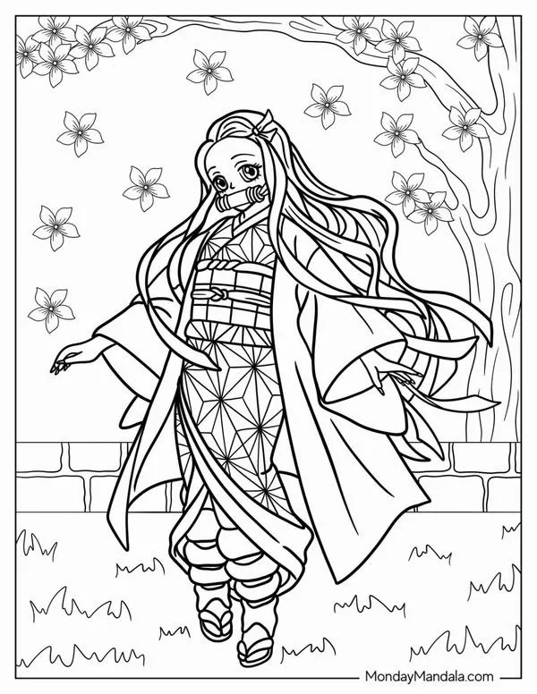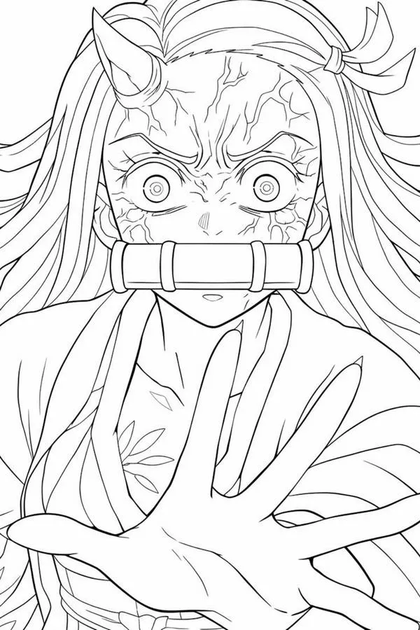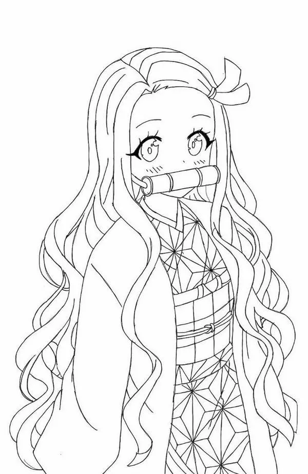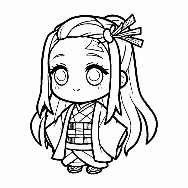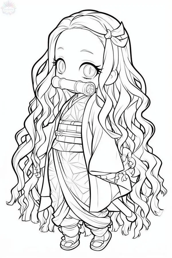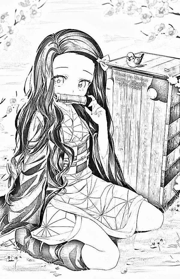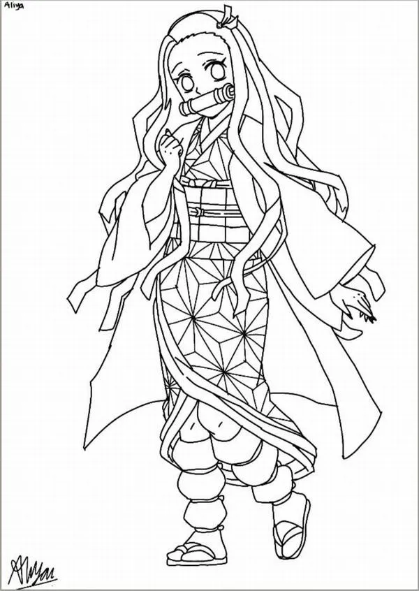 Nezuko Kamado xuất hiện trong Thanh gươm diệt quỷ của Koyoharu Gotouge, nổi bật với hình ảnh em gái Tanjiro bị biến thành quỷ nhưng vẫn giữ lòng nhân hậu. Cô có mái tóc đen dài, ngọn tóc cam, đôi mắt hồng, Kimono hồng họa tiết lá gai, Haori đen và ống tre xanh buộc dây đỏ. Khi lên tranh tô màu của trẻ, Nezuko vừa có nét ngây thơ, vừa có sức mạnh bộc huyết rực lửa rất cuốn.