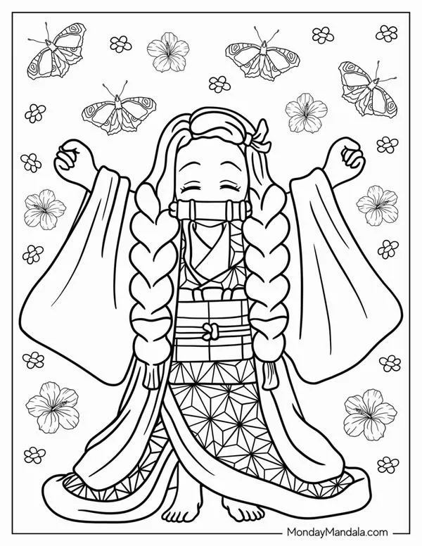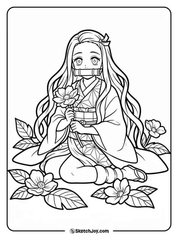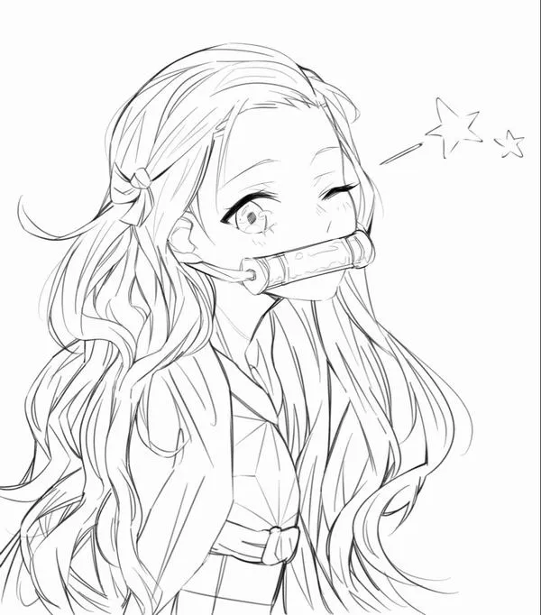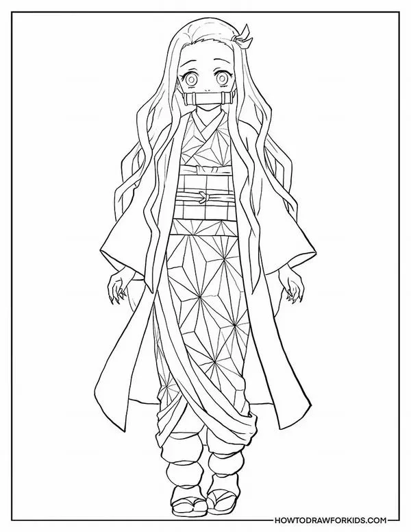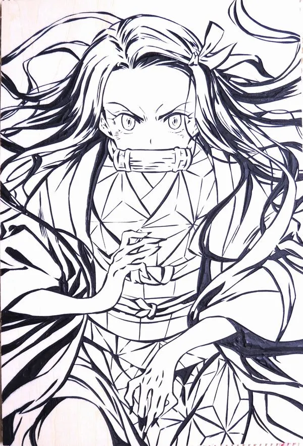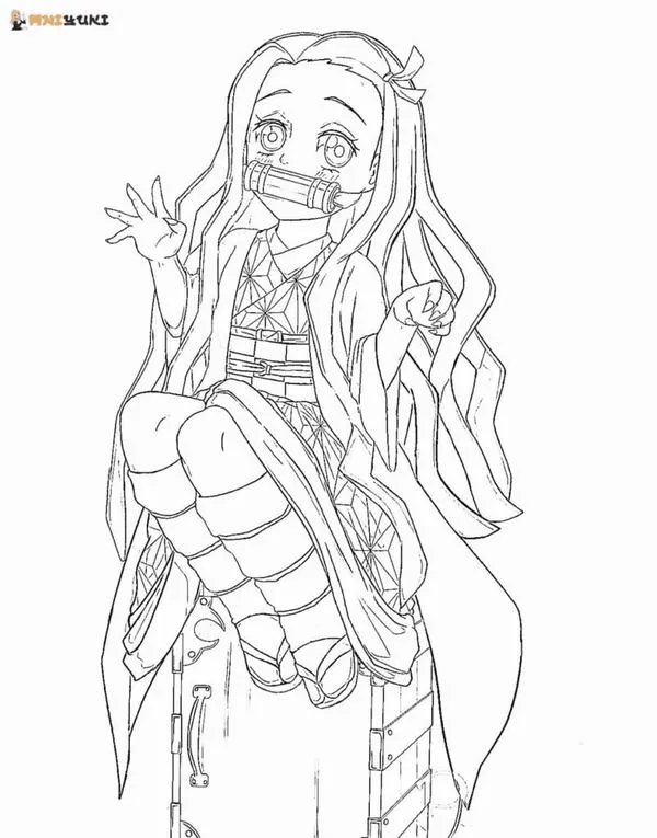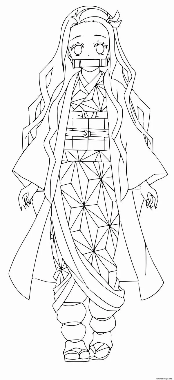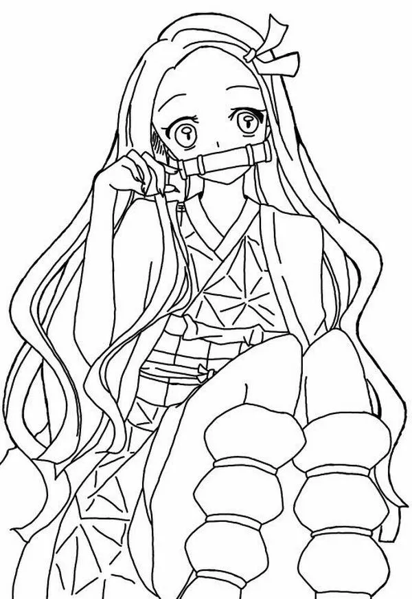Nezuko Kamado xuất hiện trong Thanh gươm diệt quỷ của Koyoharu Gotouge, nổi bật với hình ảnh em gái Tanjiro bị biến thành quỷ nhưng vẫn giữ lòng nhân hậu. Cô có mái tóc đen dài, ngọn tóc cam, đôi mắt hồng, Kimono hồng họa tiết lá gai, Haori đen và ống tre xanh buộc dây đỏ. Khi lên tranh tô màu của trẻ, Nezuko vừa có nét ngây thơ, vừa có sức mạnh bộc huyết rực lửa rất cuốn.