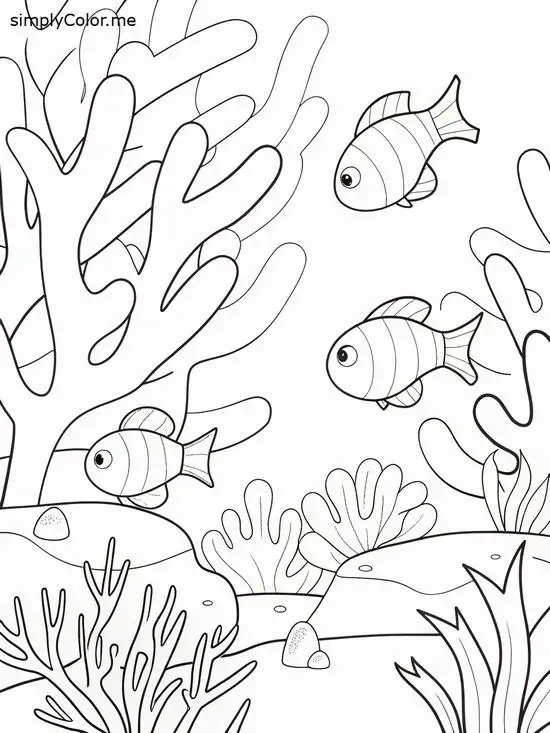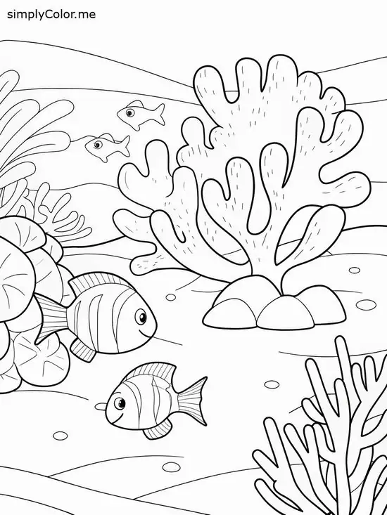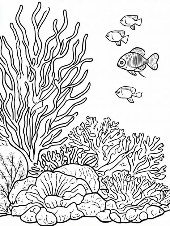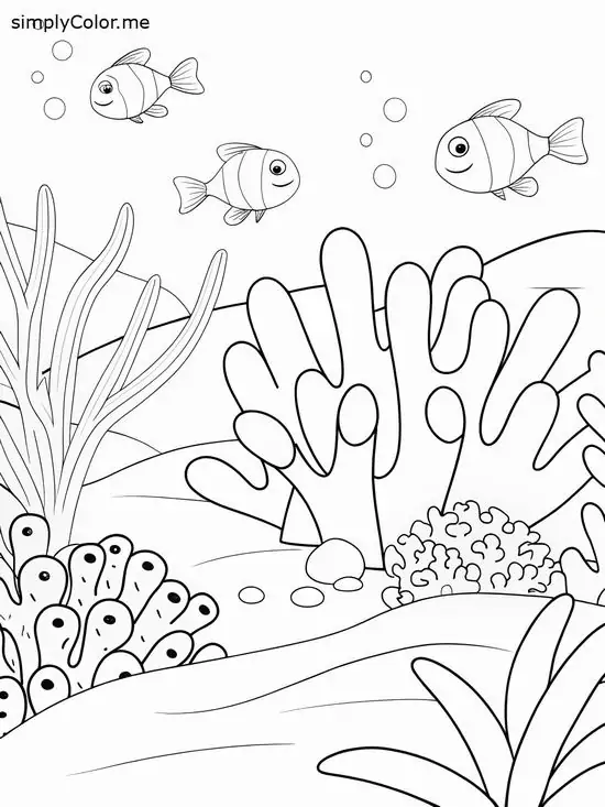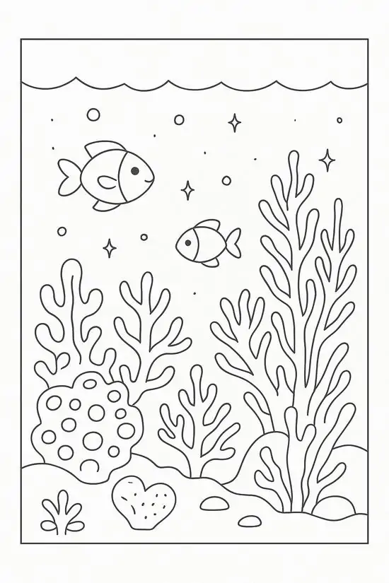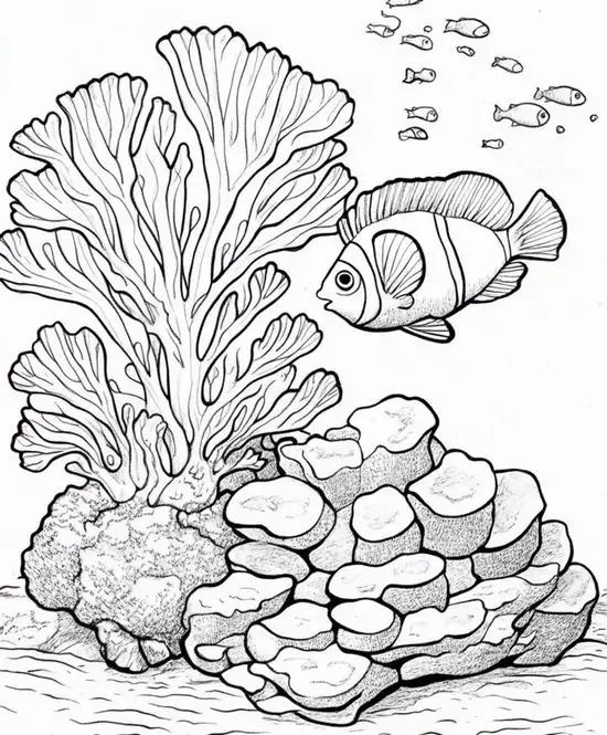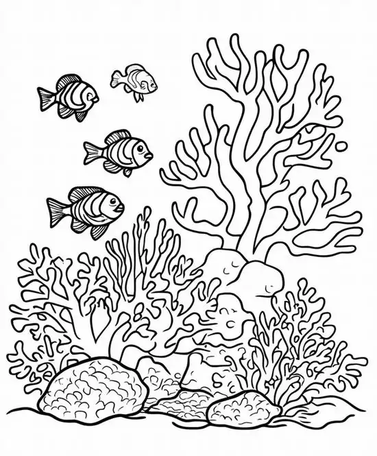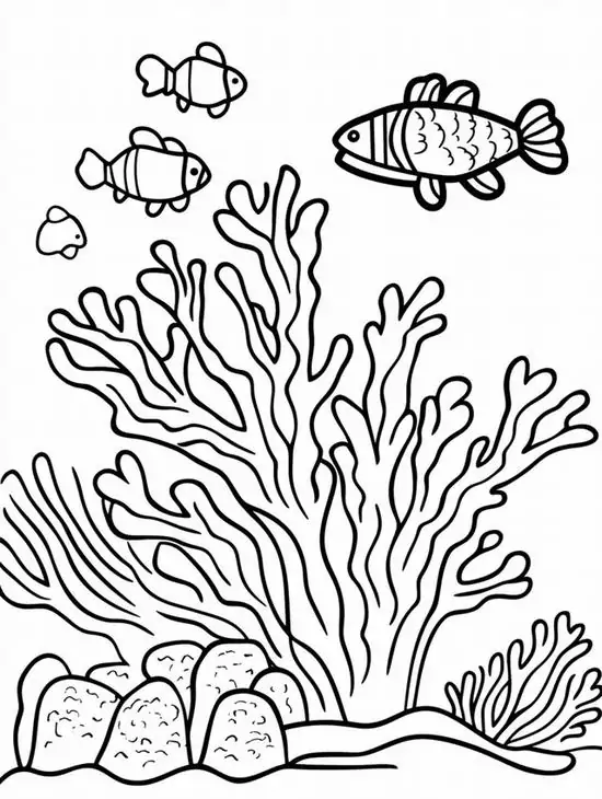 Bộ tranh san hô biển thường có đường nét rõ, mảng hình đa dạng và nhiều chi tiết đáng yêu như cá hề, sao biển, hải quỳ, ốc biển, thợ lặn hoặc tàu ngầm nhỏ. Nhờ đó bé có thể vừa tô vừa quan sát cấu trúc lạ mắt của rạn san hô nhiệt đới.