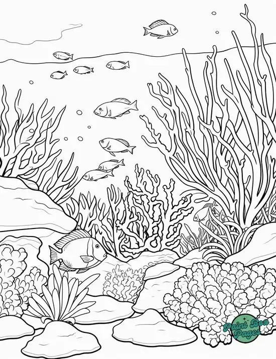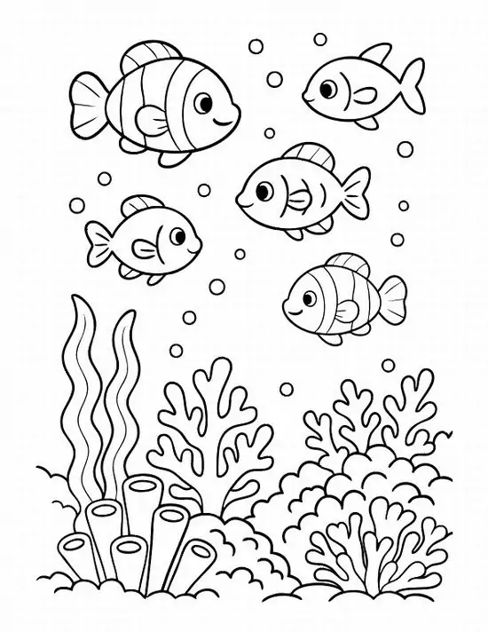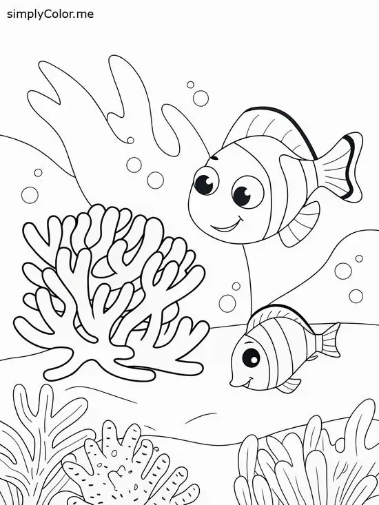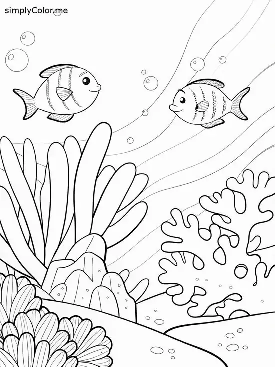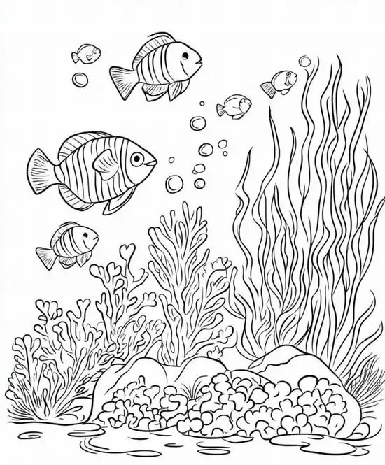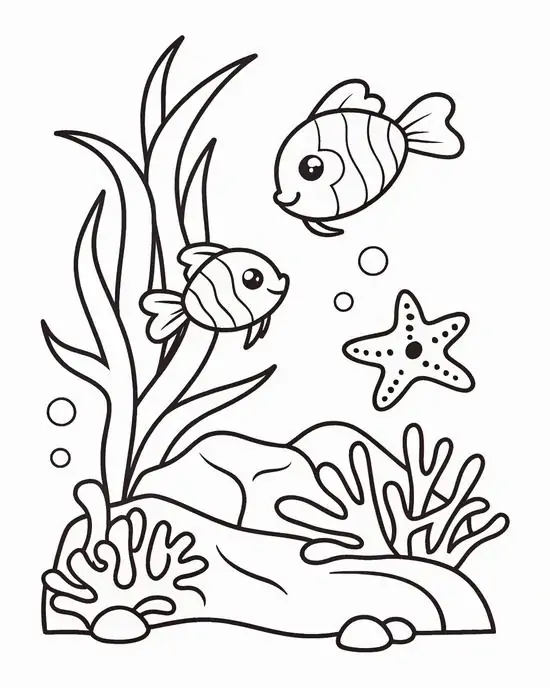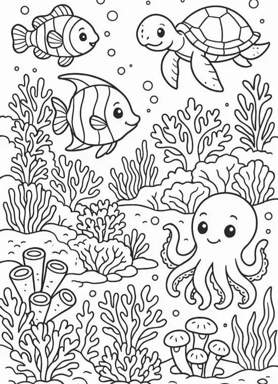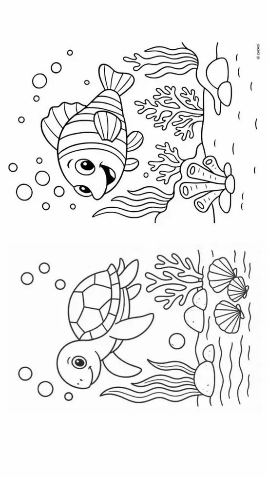 Bộ tranh san hô biển thường có đường nét rõ, mảng hình đa dạng và nhiều chi tiết đáng yêu như cá hề, sao biển, hải quỳ, ốc biển, thợ lặn hoặc tàu ngầm nhỏ. Nhờ đó bé có thể vừa tô vừa quan sát cấu trúc lạ mắt của rạn san hô nhiệt đới.