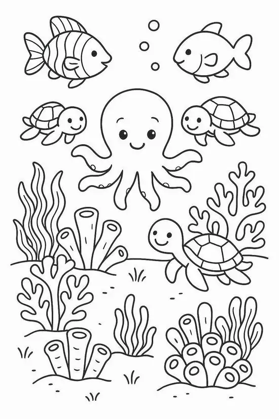 Chủ đề này hợp với bé từ khoảng 4 tuổi nếu chọn tranh đơn giản, và rất thú vị với bé 7 đến 10 tuổi khi muốn thử phối màu phong phú hơn, tạo nên cả một thế giới san hô sống động dưới đáy biển.