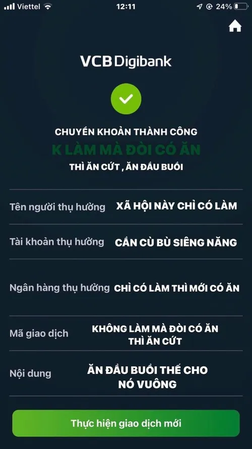 Hình ảnh chuyển khoản thành công không làm mà đòi có ăn troll