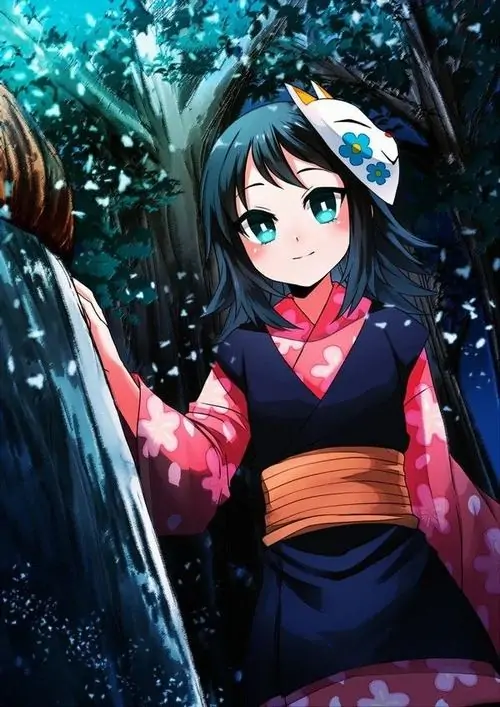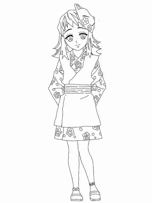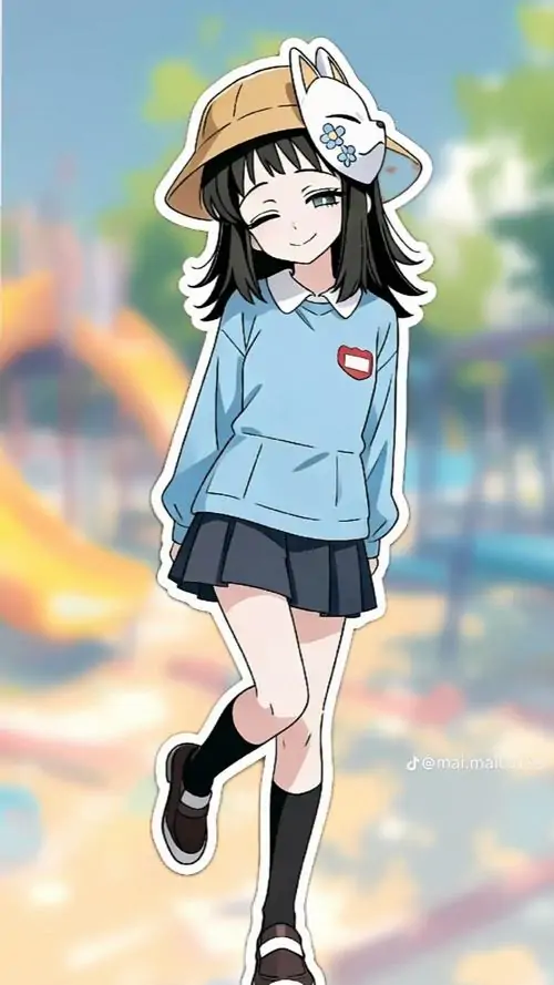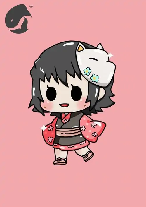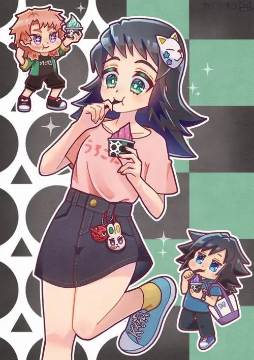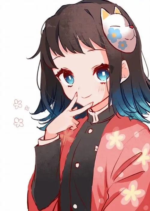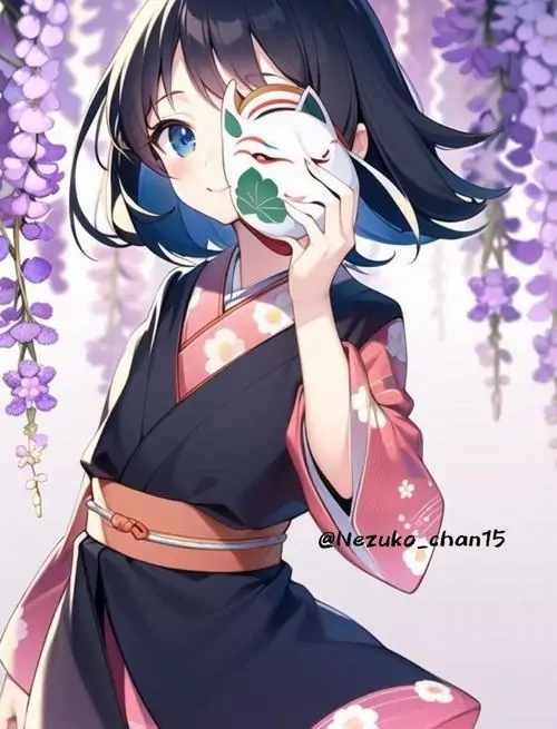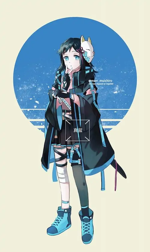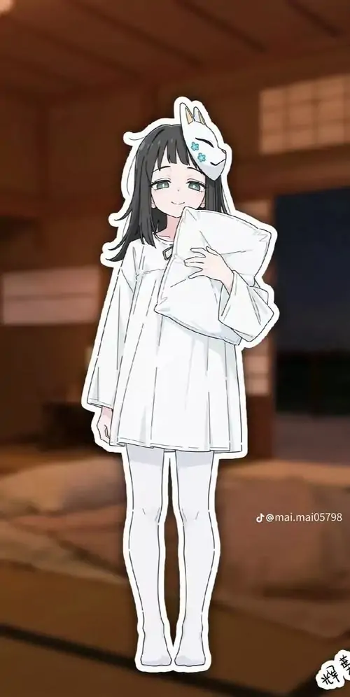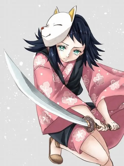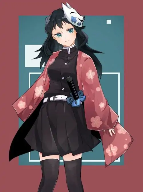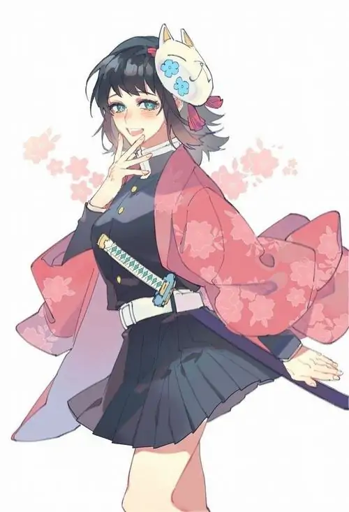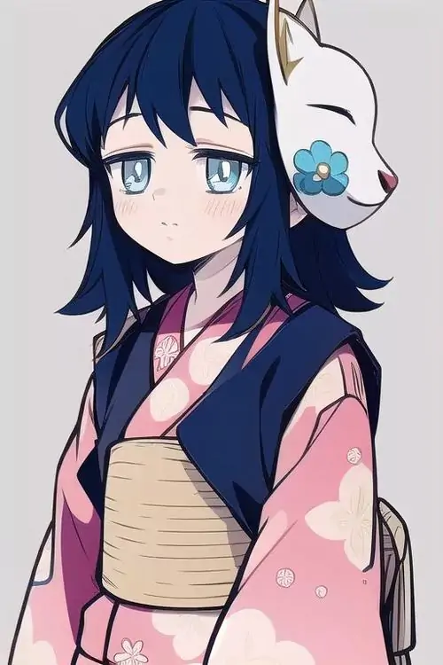 Chiếc mặt nạ cáo của Makomo là chi tiết nhận diện rất đắt, vừa gắn với Sakonji Urokodaki, vừa mang cảm giác bảo hộ theo văn hóa dân gian Nhật Bản. Họa tiết hoa đào bên má khiến chiếc mặt nạ không lạnh lùng mà mềm hơn, nữ tính hơn. Trong nhiều hình ảnh Makomo, chiếc mặt nạ không chỉ là phụ kiện. Nó giống một phần linh hồn của cô, nhắc về những đứa trẻ từng được Urokodaki yêu thương và gửi gắm hy vọng.