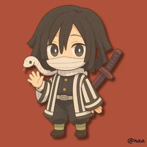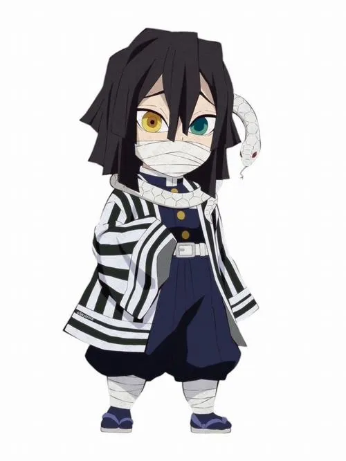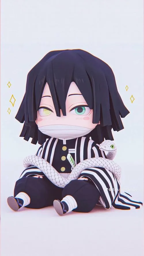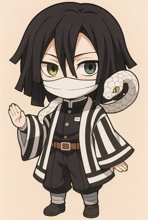 Ảnh chibi cute về Obanai làm mềm đi vẻ nghiêm khắc quen thuộc của Xà Trụ, giúp nhân vật trở nên gần gũi mà vẫn giữ chiều sâu cảm xúc. Đằng sau tạo hình nhỏ xíu là tinh thần bảo vệ loài người, tình cảm âm thầm và nét cô độc rất riêng của Iguro Obanai.