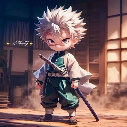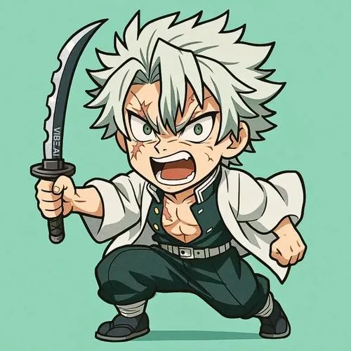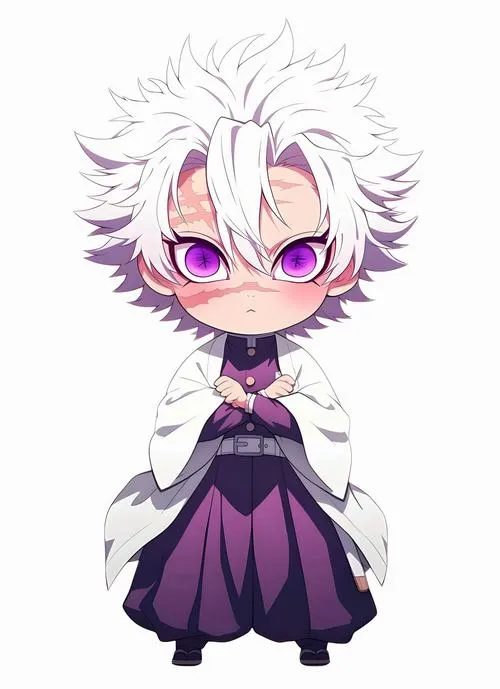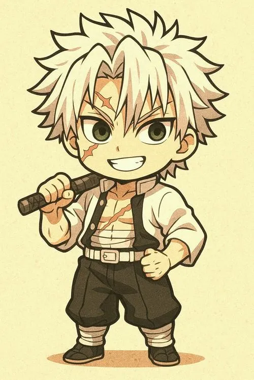 Ảnh Sanemi chibi là dạng hình minh họa vẽ lại Sanemi Shinazugawa theo phong cách đầu to mình nhỏ, nét vẽ tối giản nhưng vẫn giữ các dấu hiệu nhận diện như mái tóc trắng dựng, vết sẹo trên mặt, mắt trắng dã, áo khoác haori trắng và thanh Nhật Luân Kiếm. Bộ ảnh hợp với fan Diệt Quỷ Cứu Nhân thích nhân vật Phong Trụ nhưng muốn một cảm giác nhẹ nhàng, dễ thương hơn bản gốc.