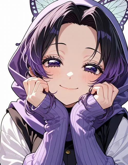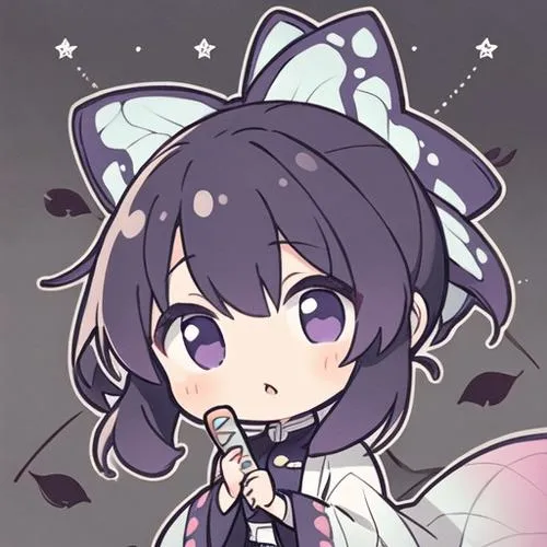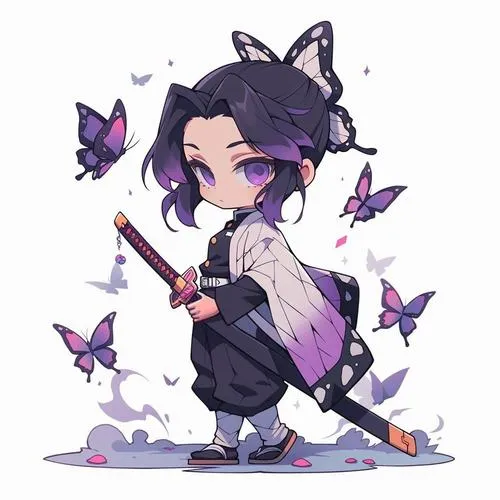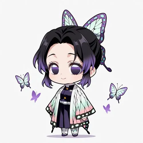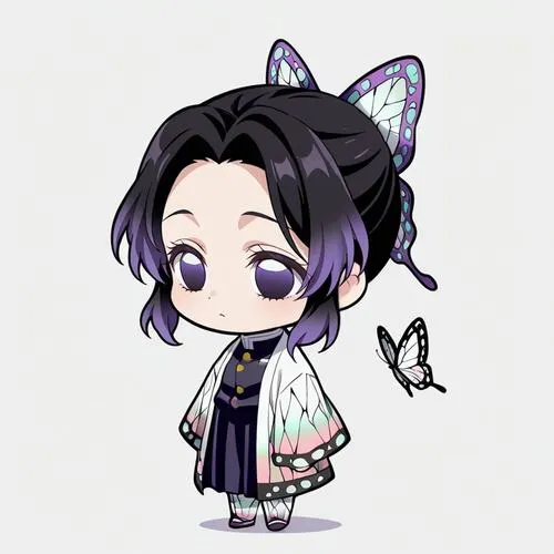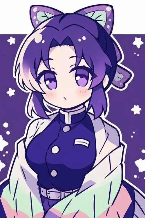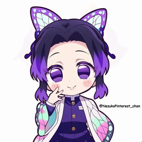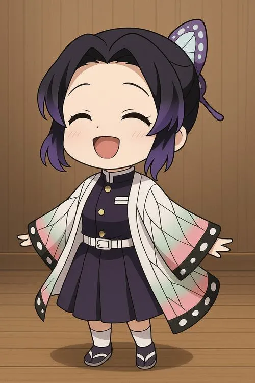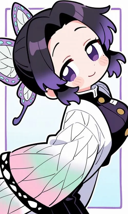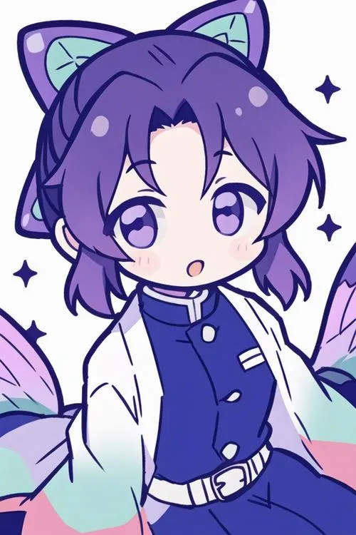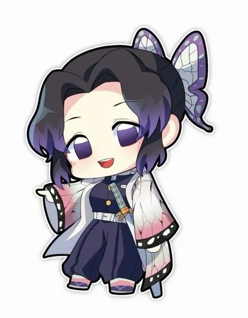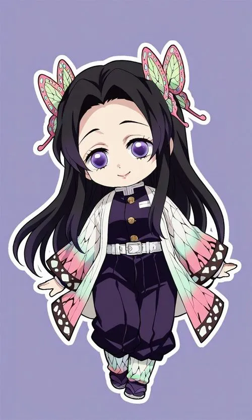 Bộ ảnh Shinobu chibi là tập hợp những hình minh họa lấy cảm hứng từ Shinobu Kocho trong bộ ảnh Kimetsu no Yaiba, nhưng được biến tấu theo phong cách đầu to người nhỏ đáng yêu. Điểm nổi bật nằm ở đôi mắt tím long lanh, tóc búi cao gọn gàng, kẹp tóc hình bướm, áo haori họa tiết cánh bướm và thanh kiếm Nichirin mảnh mai được thu nhỏ.