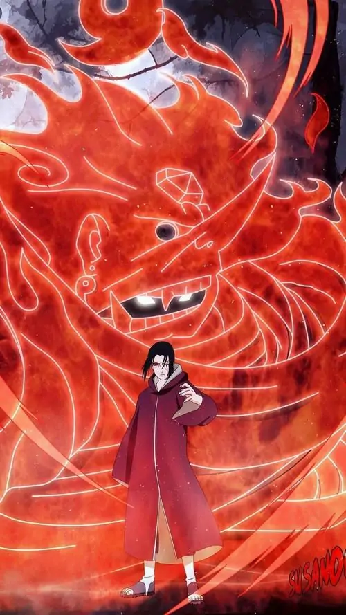 Itachi UchihaManga, anime, gameVàng trong manga, đỏ cam trong anime. Có dạng khung xương, dạng người, giáp trụ và toàn chân thể trong gameMang dáng tengu mũi dài, có tóc viền quanh mặt, đeo khuyên magatama. Nổi bật với kiếm Totsuka và khiên Yata, tạo cảm giác vừa hộ mệnh vừa phong ấn cực mạnh