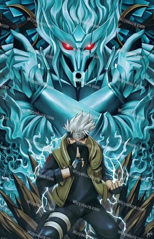 Kakashi HatakeManga, anime, gameXanh lam nhạt. Chỉ được thấy ở dạng toàn chân thểSusanoo có mũi tengu, phần đầu giống băng bảo hộ trán, hai lọn tóc rủ hai bên mặt, lỗ ở cằm và vệt dọc qua mắt trái giống vết sẹo đặc trưng của Kakashi. Vũ khí nổi bật là katana và shuriken Mangekyo có khả năng dịch chuyển mục tiêu