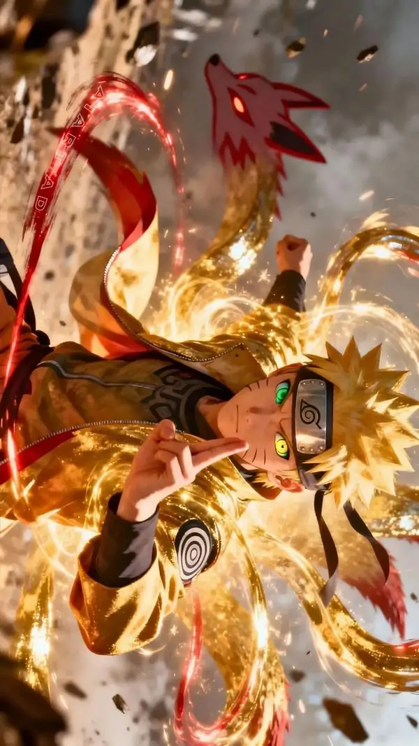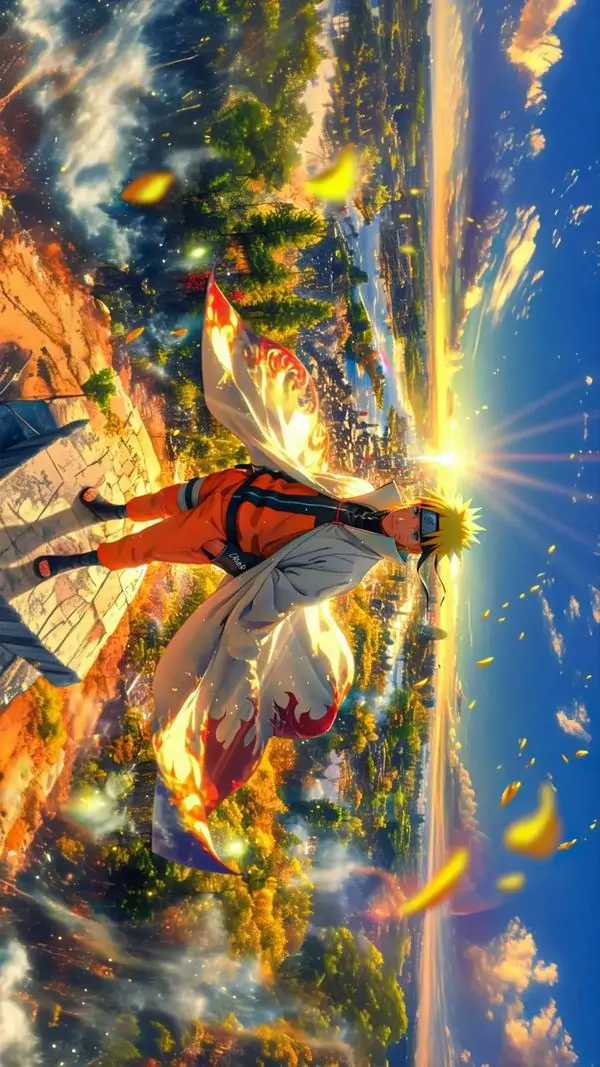 Điểm cuốn của bộ ảnh nền máy tính nằm ở cách thể hiện nhiều giai đoạn trưởng thành của Naruto. Khi thì là cậu bé Genin nghịch ngợm với áo khoác cam và nụ cười sáng, khi lại là Hokage đệ thất chững chạc, mang trên vai trách nhiệm bảo vệ hòa bình. Những chi tiết như băng đeo trán làng Lá, ba vệt râu mèo, ấn chú trên bụng, Rasengan, chakra vàng kim hay sức mạnh vĩ thú Kurama giúp hình nền có chiều sâu hơn hẳn một bức ảnh trang trí thông thường.