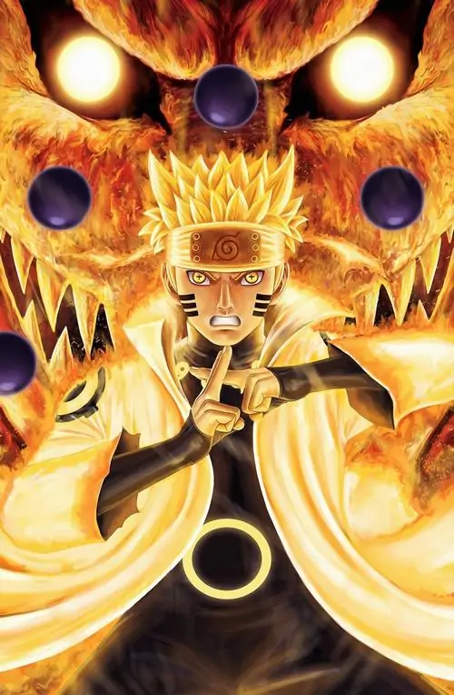 - Naruto sở hữu một chiếc áo choàng chakra màu vàng sáng chói với các biểu tượng magatama đặc trưng trên lưng và cổ áo.
