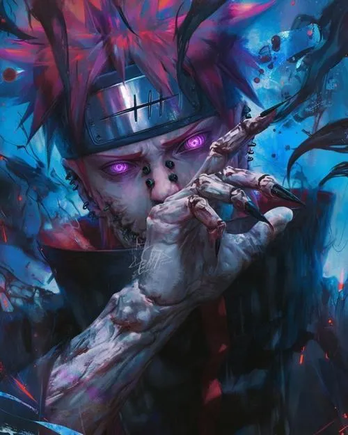Pain đóng vai trò là thủ lĩnh tinh thần của tổ chức tội phạm Akatsuki trong bộ truyện Naruto. Sức mạnh của nhân vật nam anime này đến từ đôi mắt thần thánh có khả năng thao túng trọng lực và hồi sinh người chết.