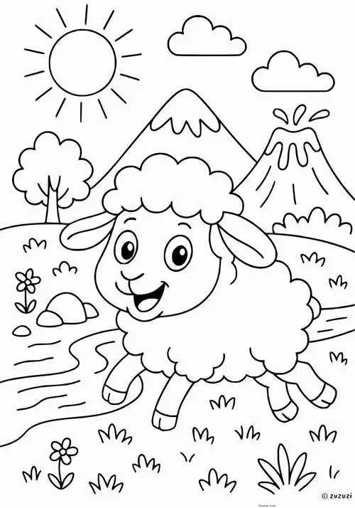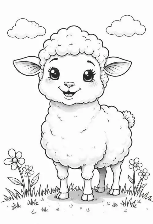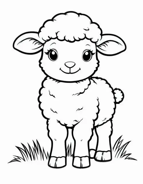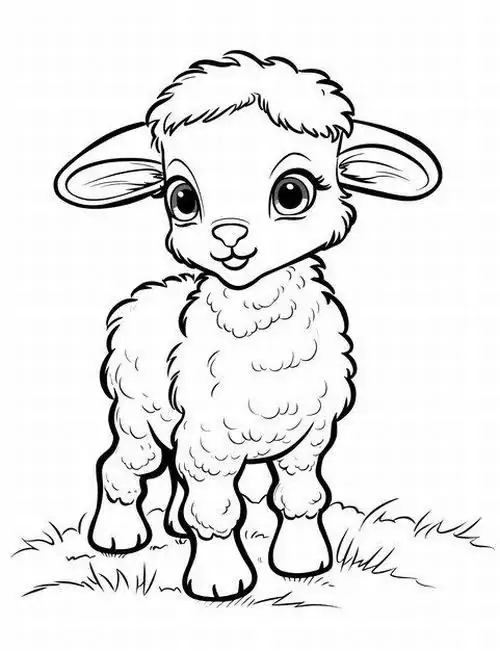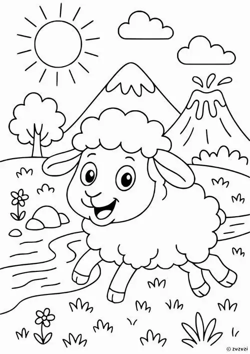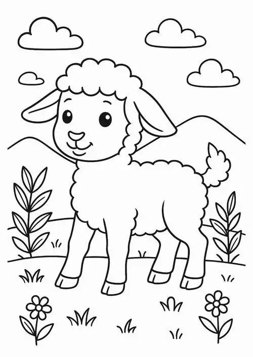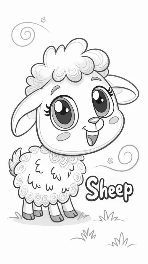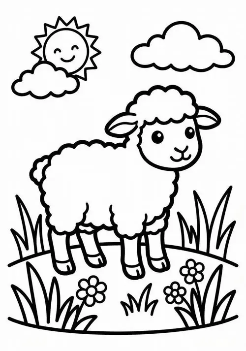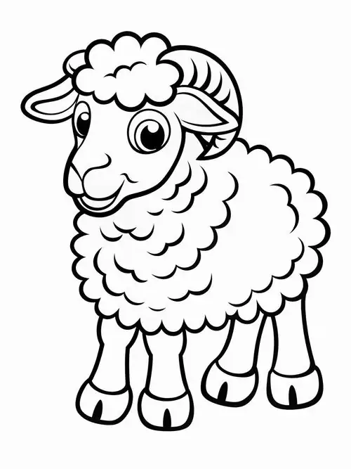 Con cừu là loài gia súc hiền lành, quen thuộc trong nông nghiệp, thường sống ở trang trại hoặc đồng cỏ thảo nguyên rộng lớn. Điểm nổi bật nhất là bộ lông dày, xoăn tự nhiên, mềm mại và có khả năng giữ ấm rất tốt. Trong tranh tô màu, bé sẽ dễ nhận ra mắt cừu to tròn, tai cụp nhỏ, chân có móng guốc chắc, đuôi ngắn và đôi khi là cặp sừng xoắn uy nghi ở cừu đực.