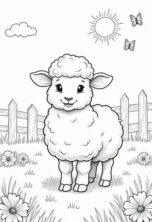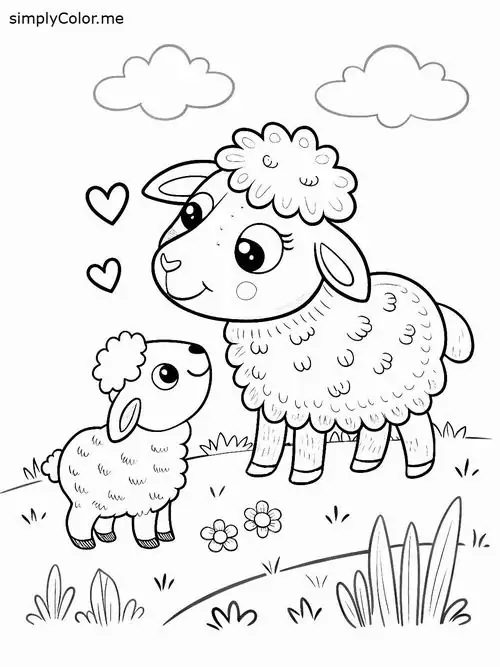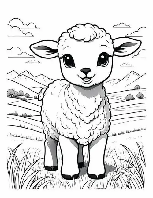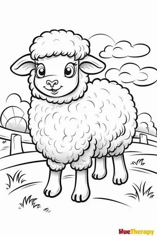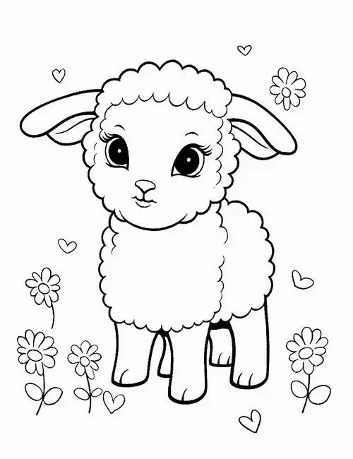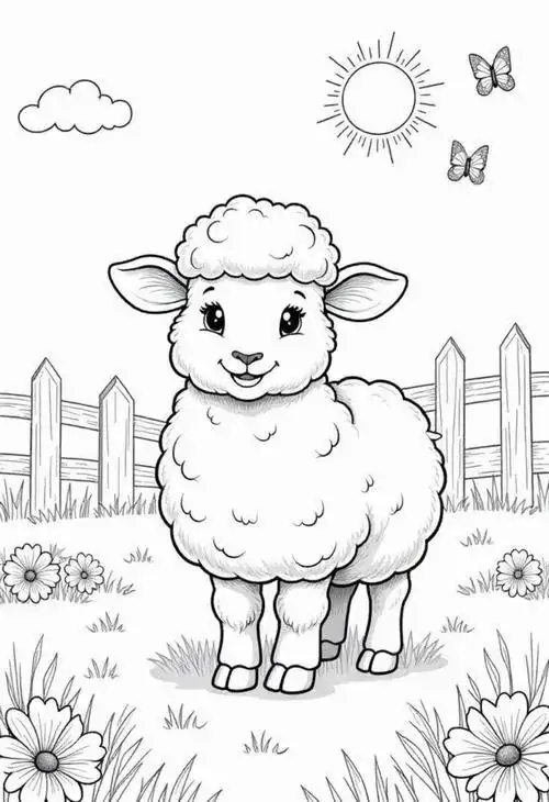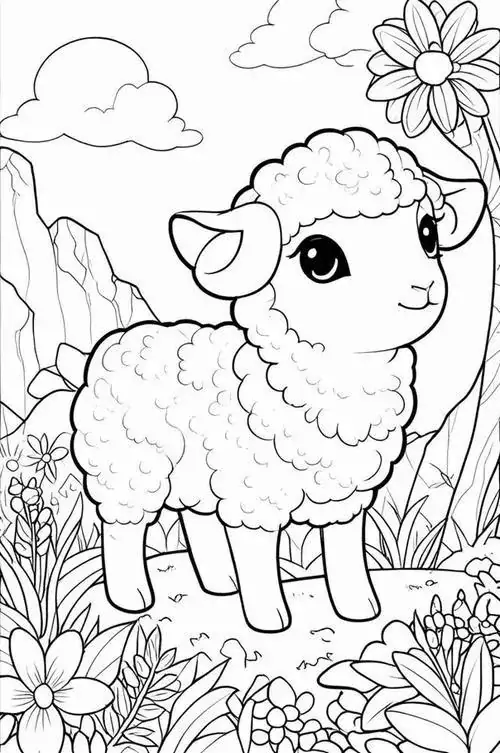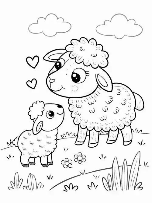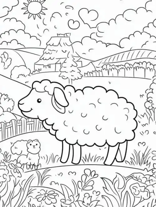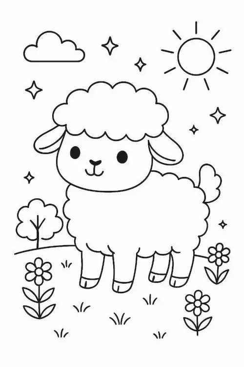 Con cừu là loài gia súc hiền lành, quen thuộc trong nông nghiệp, thường sống ở trang trại hoặc đồng cỏ thảo nguyên rộng lớn. Điểm nổi bật nhất là bộ lông dày, xoăn tự nhiên, mềm mại và có khả năng giữ ấm rất tốt. Trong tranh tô màu, bé sẽ dễ nhận ra mắt cừu to tròn, tai cụp nhỏ, chân có móng guốc chắc, đuôi ngắn và đôi khi là cặp sừng xoắn uy nghi ở cừu đực.