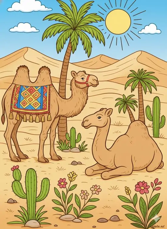 Chủ đề này đáng yêu cực. Lạc đà không chỉ lạ mắt mà còn mang theo cả khung cảnh sa mạc, ốc đảo, xương rồng, mặt trời rực rỡ nên bức nào tô lên cũng rất có không khí. Arte y Cultura TV tổng hợp bộ tranh tô màu lạc đà giúp bé làm quen với động vật hoang mạc theo cách dễ nhớ, dễ thích, mà cũng rất cuốn.