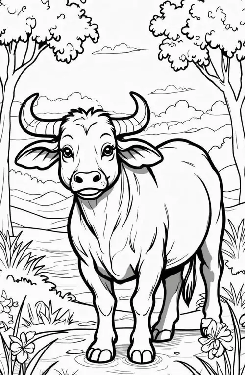 Bộ tranh tô màu con trâu thường có nét vẽ rõ, khoảng trống vừa phải. Bé nhỏ có thể tô những mẫu con trâu đứng ăn cỏ, nghé con, trâu bên ao. Bé lớn hơn sẽ thích tranh có thêm nông dân cày ruộng, trẻ chăn trâu thổi sáo, xe lúa, lũy tre hay lễ hội chọi trâu.