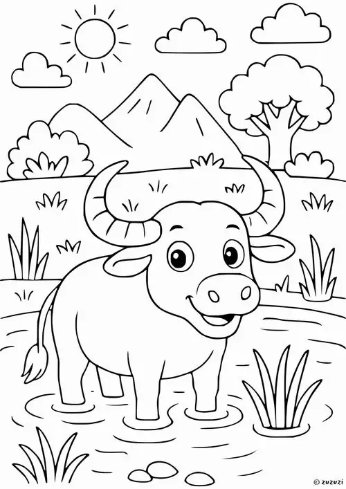 Tranh tô màu con trâu mang đến cho bé một góc tuổi thơ thật yên bình, nơi có đồng cỏ xanh, ruộng lúa vàng và hình ảnh làng quê thân thuộc. Qua từng nét tô, bé vừa vui chơi vừa học thêm về thiên nhiên, sự chăm chỉ và nét đẹp văn hóa Việt Nam rất gần gũi.