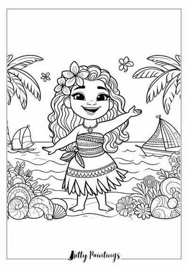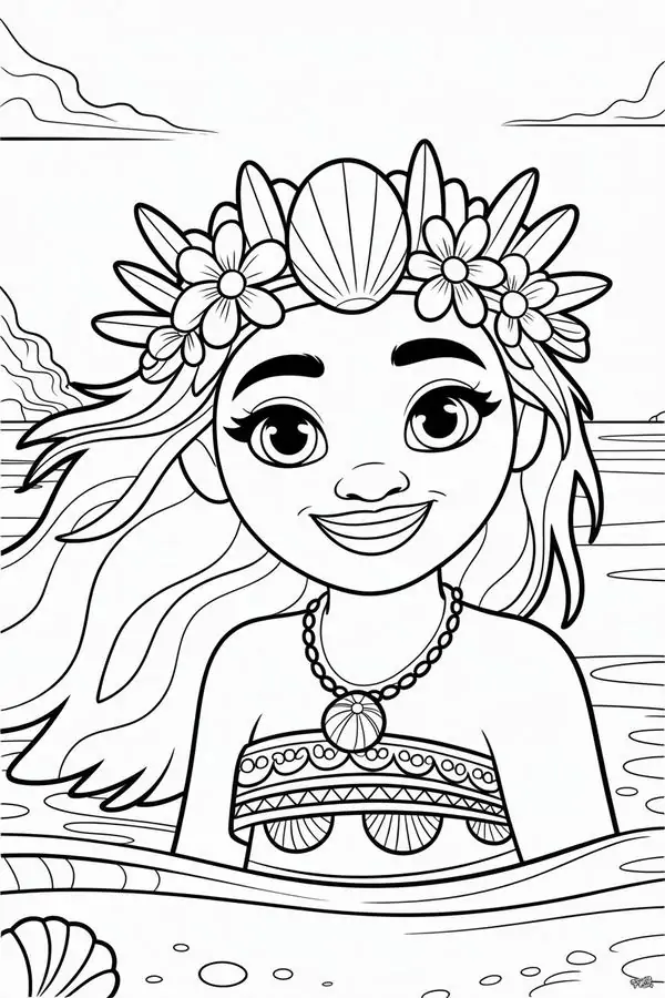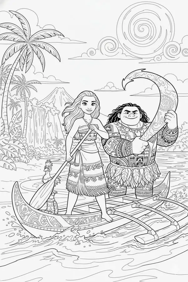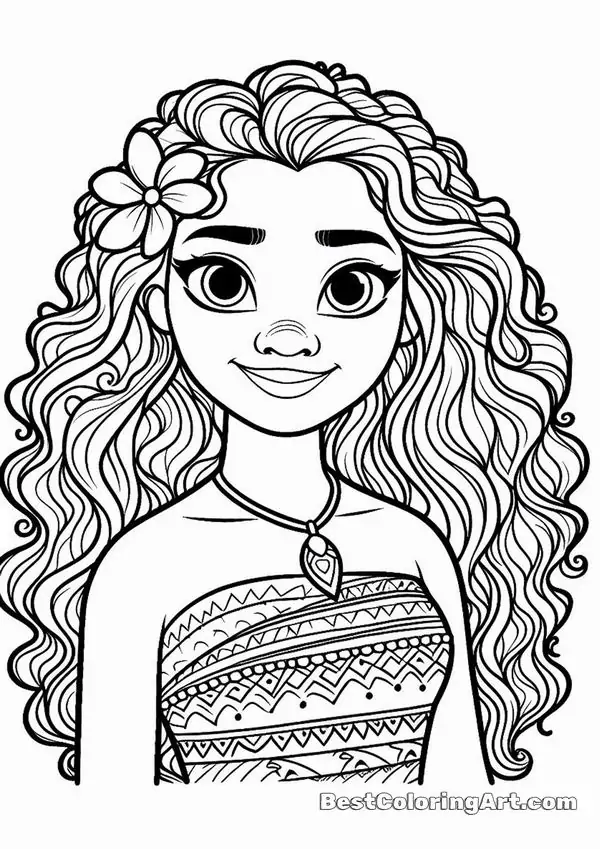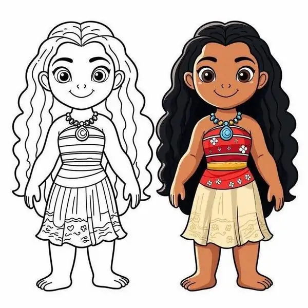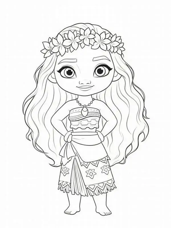 Tranh tô màu công chúa Moana lấy cảm hứng từ nhân vật hoạt hình Disney gắn với đảo Motunui, văn hóa Polynesia và hành trình trả lại trái tim Te Fiti để cứu quê hương.