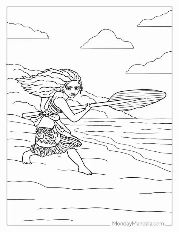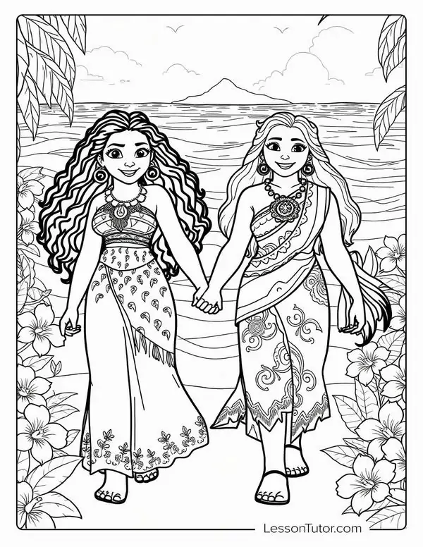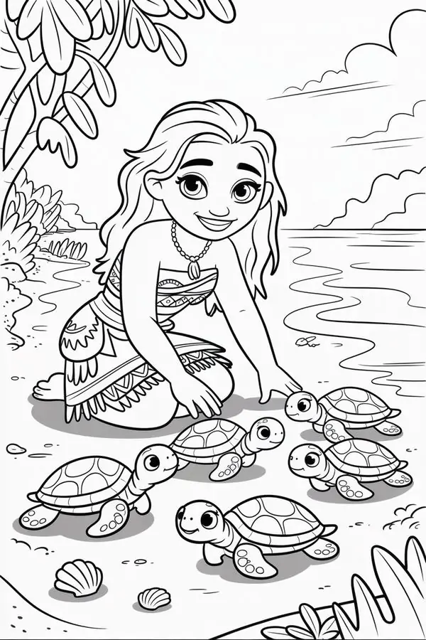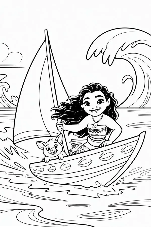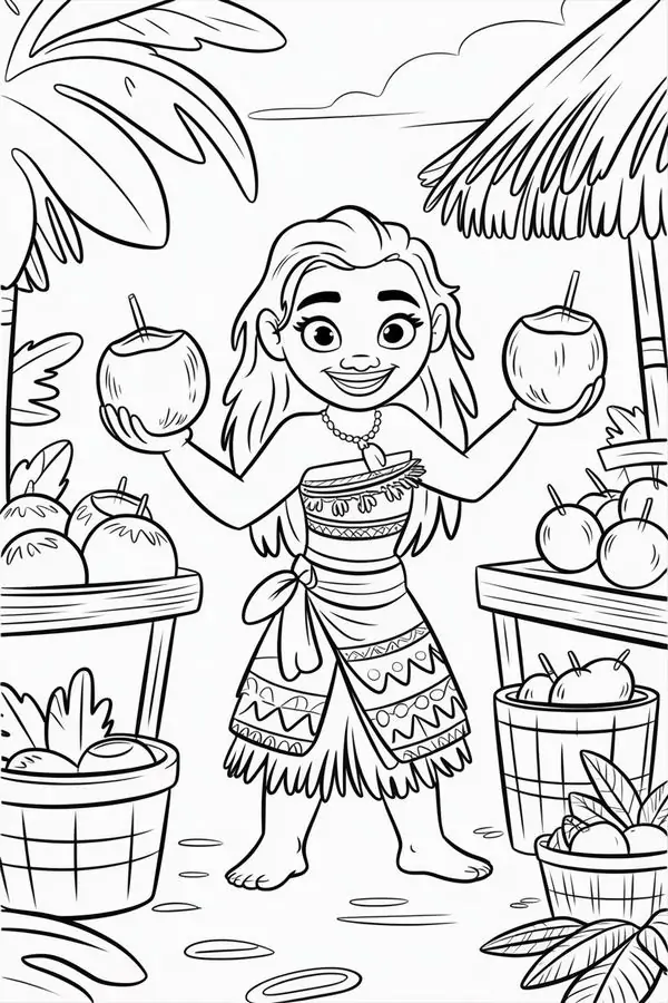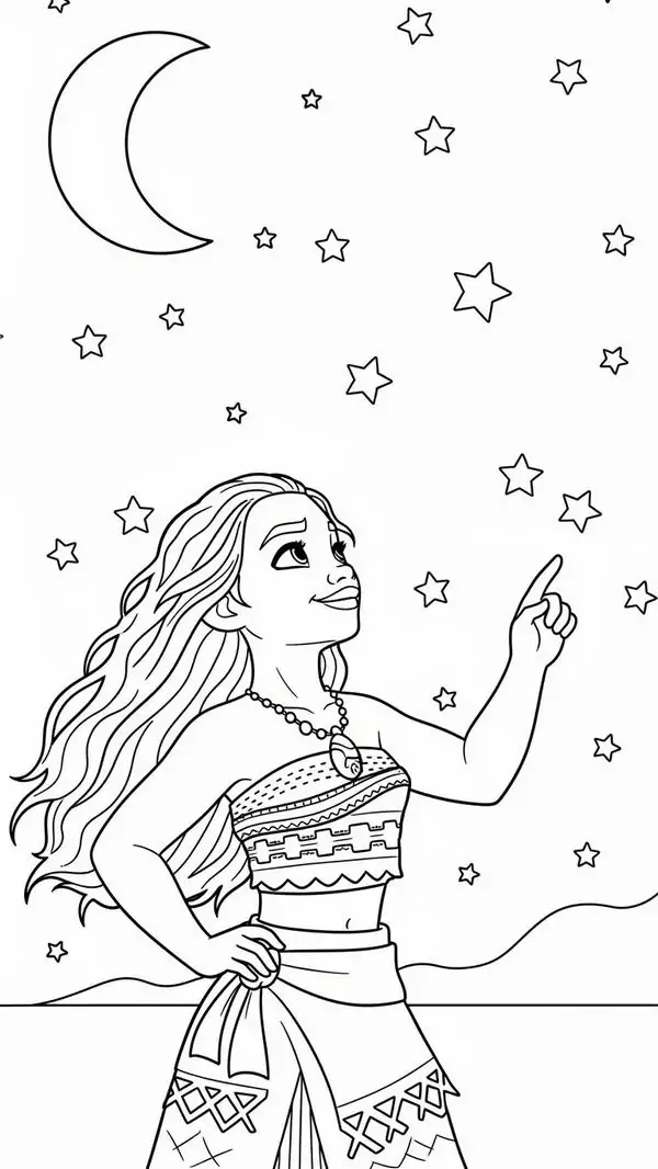 Tranh tô màu công chúa Moana lấy cảm hứng từ nhân vật hoạt hình Disney gắn với đảo Motunui, văn hóa Polynesia và hành trình trả lại trái tim Te Fiti để cứu quê hương.