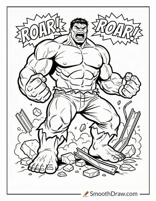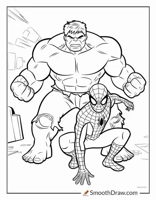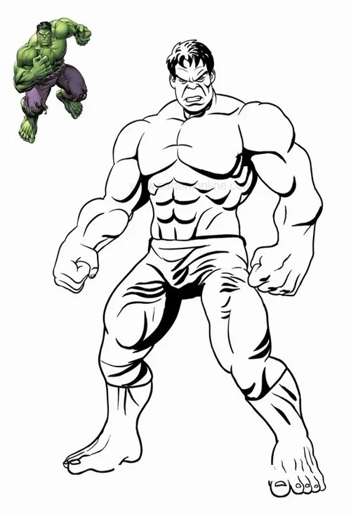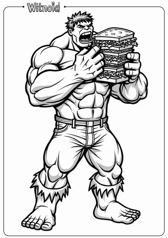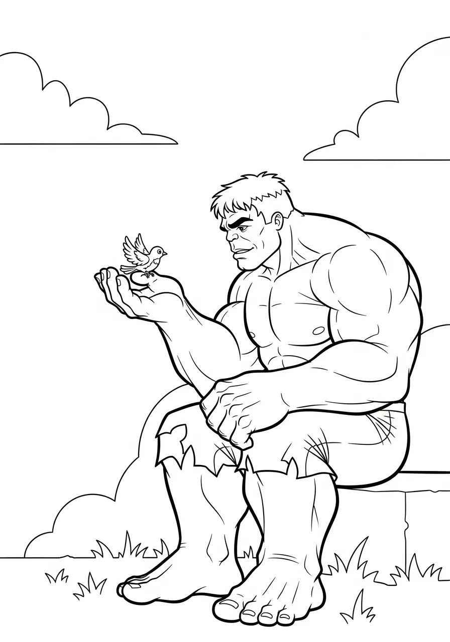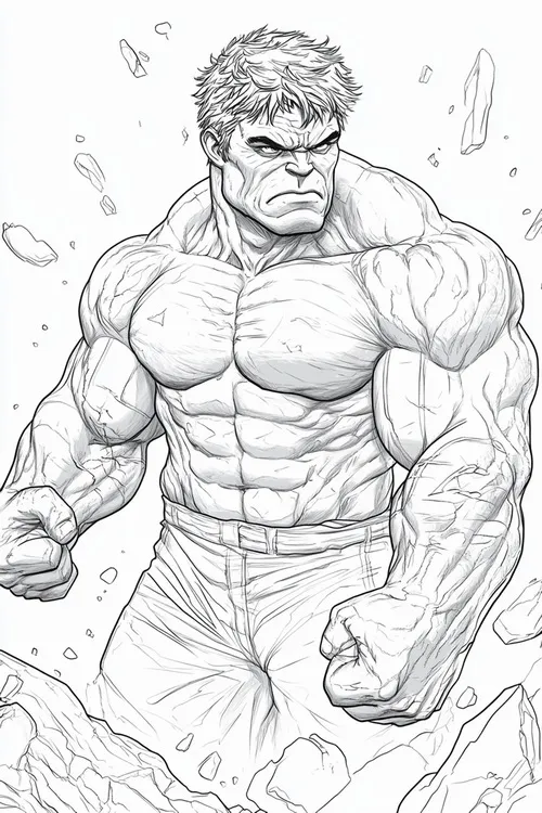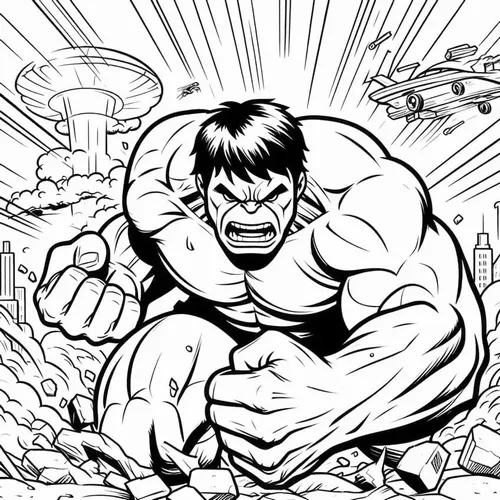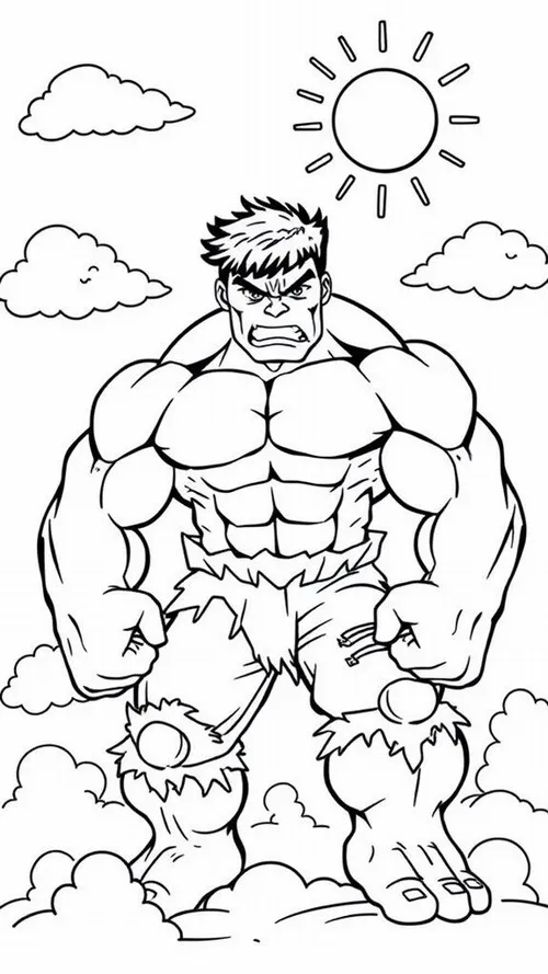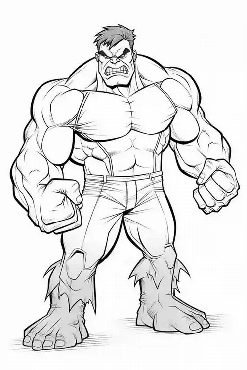 Hulk, hay Người khổng lồ xanh, là nhân vật nổi tiếng của Marvel Comics do Stan Lee và Jack Kirby góp phần tạo nên. Điểm dễ nhận ra nhất là làn da xanh lá, cơ bắp đồ sộ, đôi tay khổng lồ và chiếc quần tím rách gấu. Trong tranh tô, bé thường thấy các Hulk với các tư thế chiến đấu mạnh, biểu cảm gầm vang và bối cảnh thành phố hoặc chiến trường đầy kịch tính.