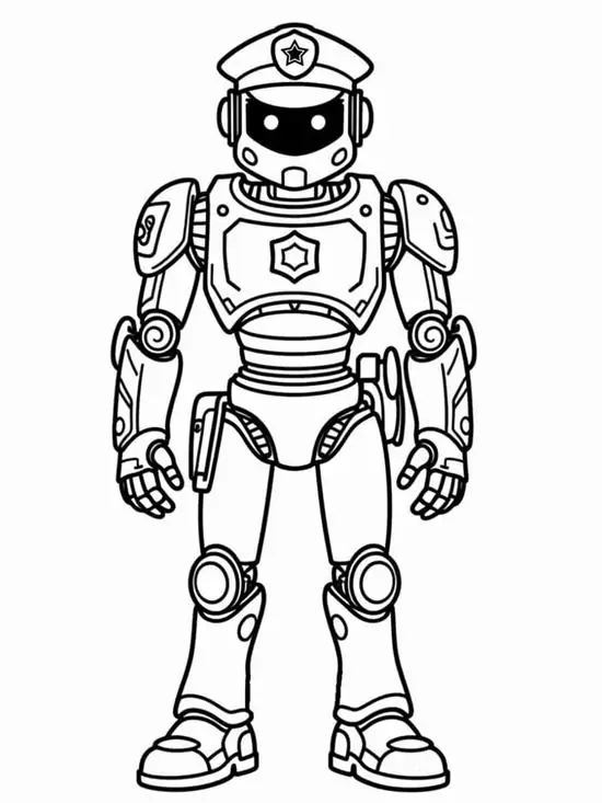 Robot cảnh sát là hình tượng kết hợp giữa người máy thông minh và nhiệm vụ giữ gìn an ninh trật tự. Tranh tô robot này xuất hiện nhiều trong phim khoa học viễn tưởng, mô hình công nghệ, robot cảnh sát Robocop, robot cảnh sát Dubai hay người máy Knightscope K5. Điểm nổi bật là bộ giáp sắt cứng cáp, mắt camera sáng, đèn còi xanh đỏ và dáng đứng rất uy nghiêm.