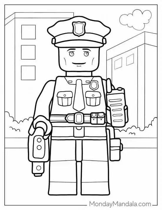 Robot cảnh sát không bị giới hạn trong vài màu quen thuộc. Bé có thể tạo ra chiến binh thép xanh ngọc, người máy công vụ bạc vàng, hay máy tuần tra thông minh với đèn neon rực rỡ. Mỗi cách tô là một phiên bản khác nhau của trí tưởng tượng. Càng sáng tạo, bức tranh càng có cá tính riêng.