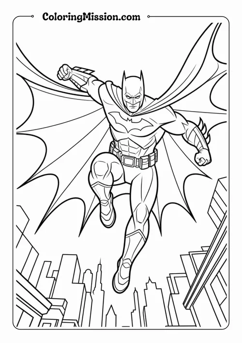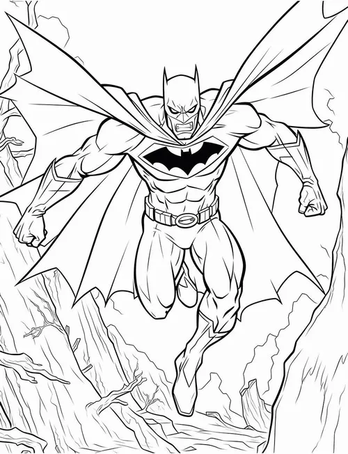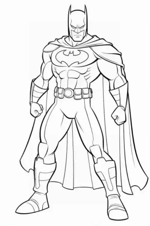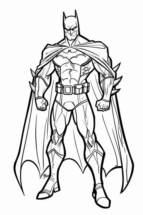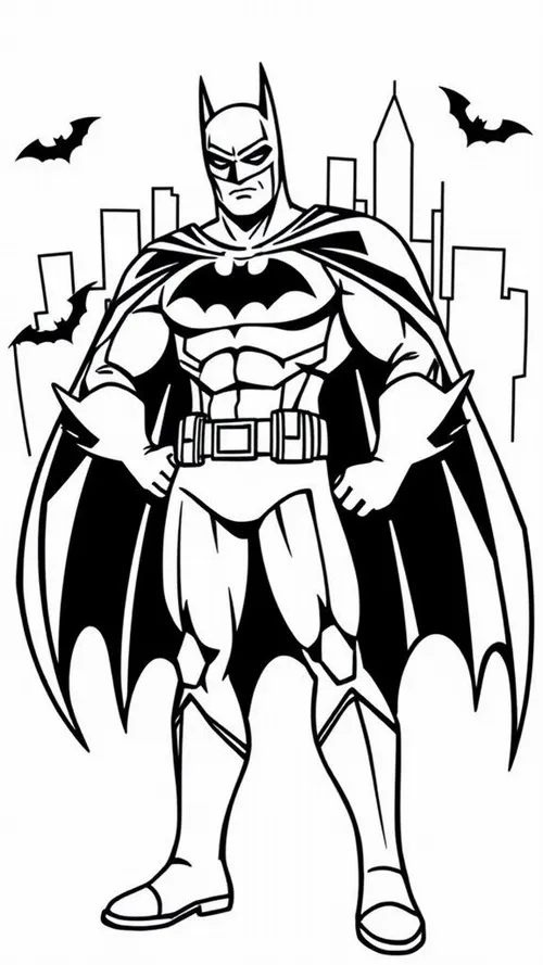 Trong tranh tô màu Batman, bé sẽ dễ nhận ra bộ giáp đen hoặc xám đậm, mặt nạ có tai dơi nhọn, áo choàng dài răng cưa và biểu tượng dơi nổi bật trước ngực. Màu sắc đặc trưng của Batman thường thiên về đen, xám, vàng, xanh đêm và đôi khi pha thêm ánh bạc để tạo cảm giác mạnh mẽ, lạnh và bí ẩn.