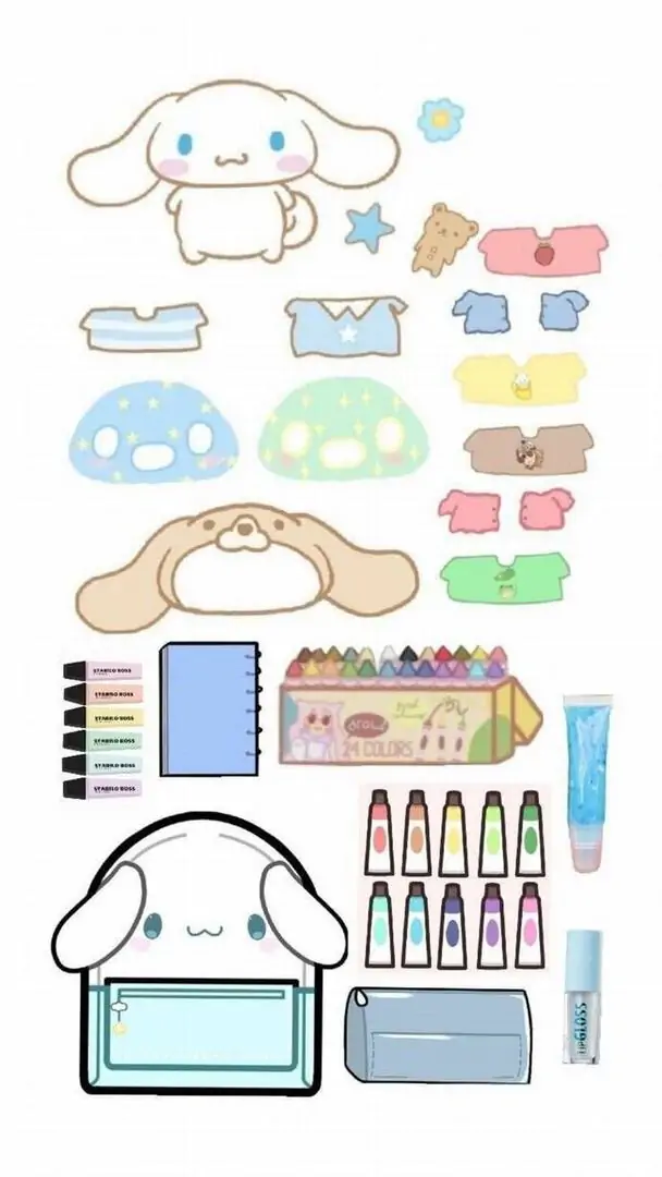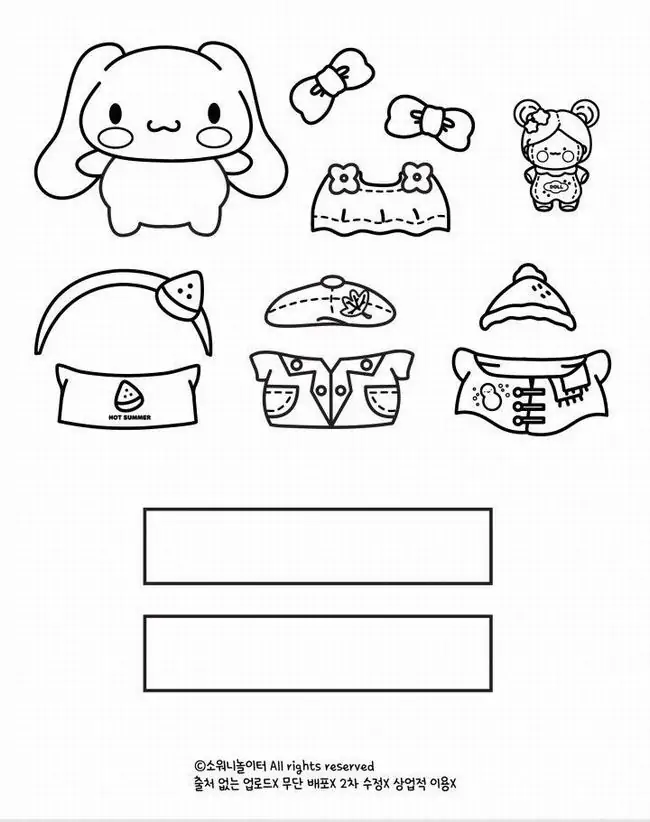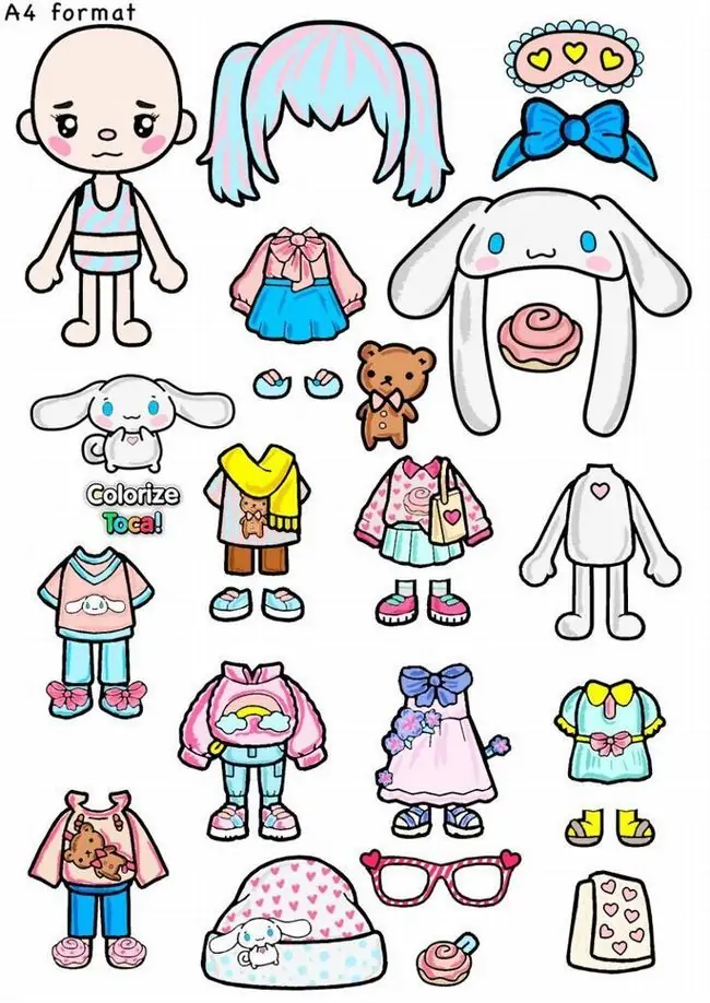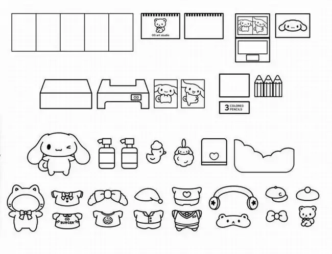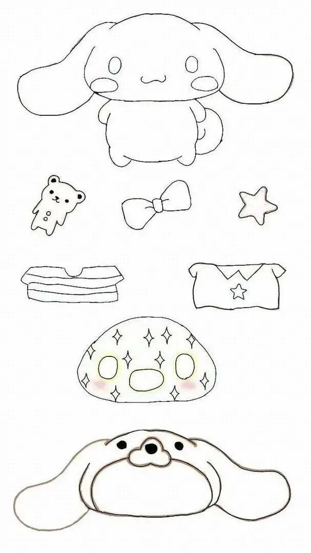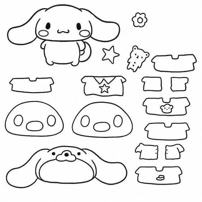 Bộ tranh tô màu búp bê giấy Cinnamoroll thay đồ thường gồm một hình búp bê gốc ở giữa và rất nhiều trang phục, phụ kiện rời xung quanh để bé tô màu rồi cắt dán. Nét vẽ rõ, khoảng trống vừa tay bé tô, chi tiết thời trang phong phú nên rất hợp với những bé gái yêu phong cách dịu dàng, thích phối đồ và chơi thủ công DIY.