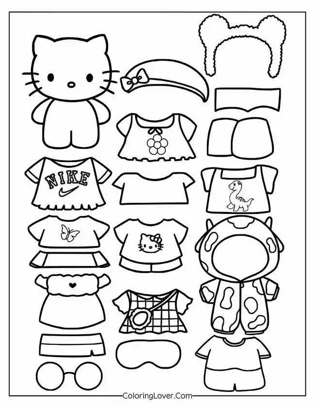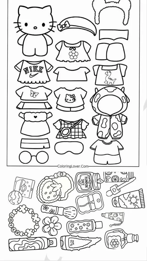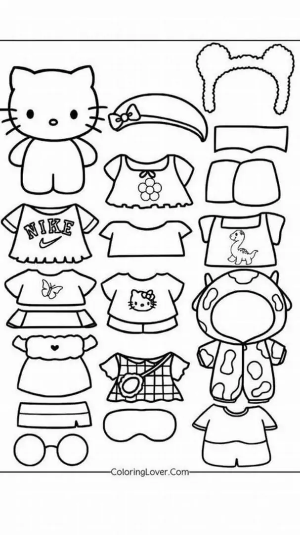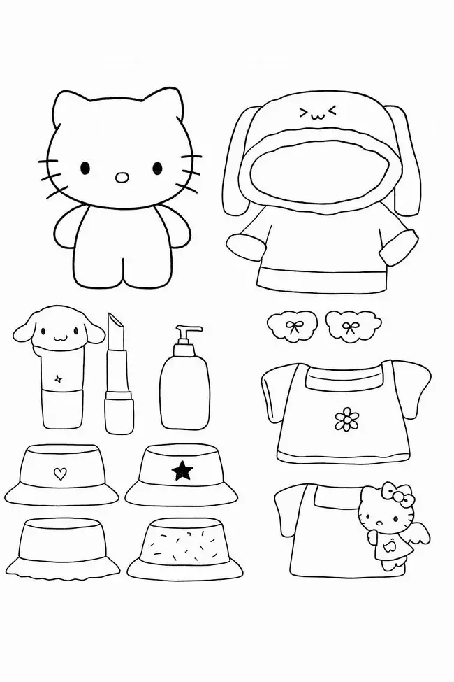 Bộ tranh tô màu búp bê paper doll Hello Kitty thay đồ là kiểu nội dung tương tác rất cuốn, vì bé không chỉ tô một nhân vật duy nhất mà còn được làm cả tủ đồ mini cho Kitty. Điểm nổi bật là đường nét rõ, hình khối đơn giản, phụ kiện rời dễ cắt và dễ thay. Chủ đề này hợp với nhiều bé, nhưng thường các bé yêu phong cách dễ thương, thích váy áo, mix đồ và chơi đóng vai sẽ mê hơn một chút.