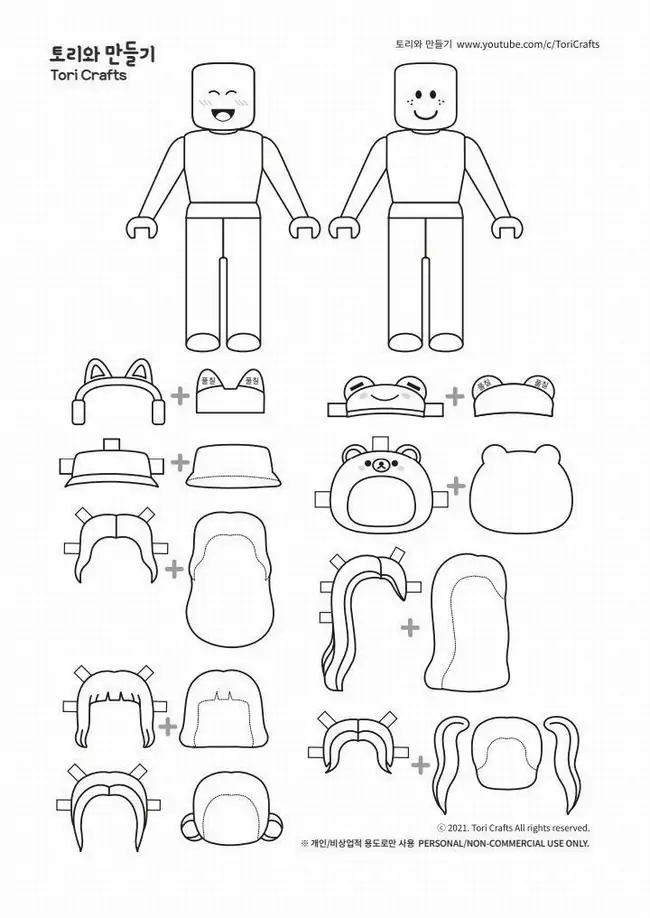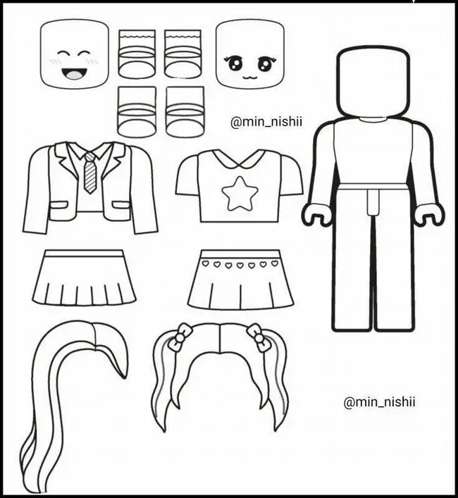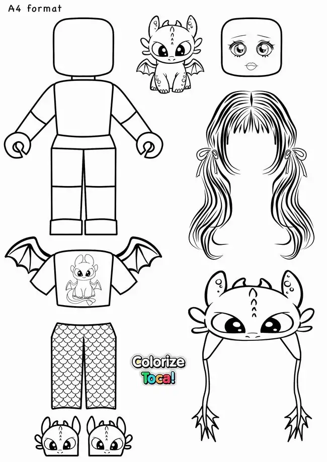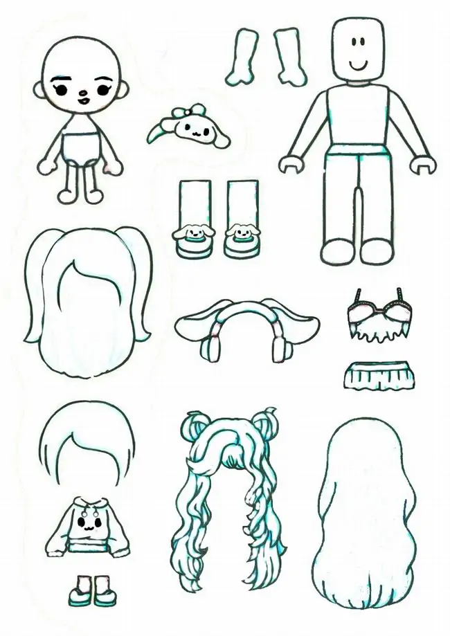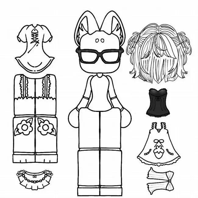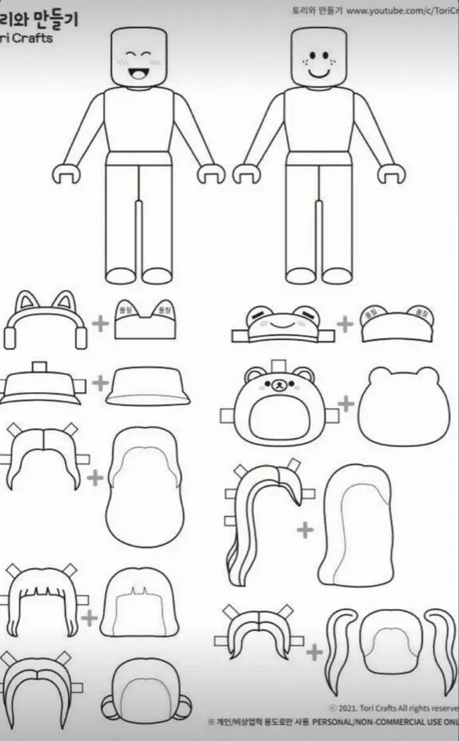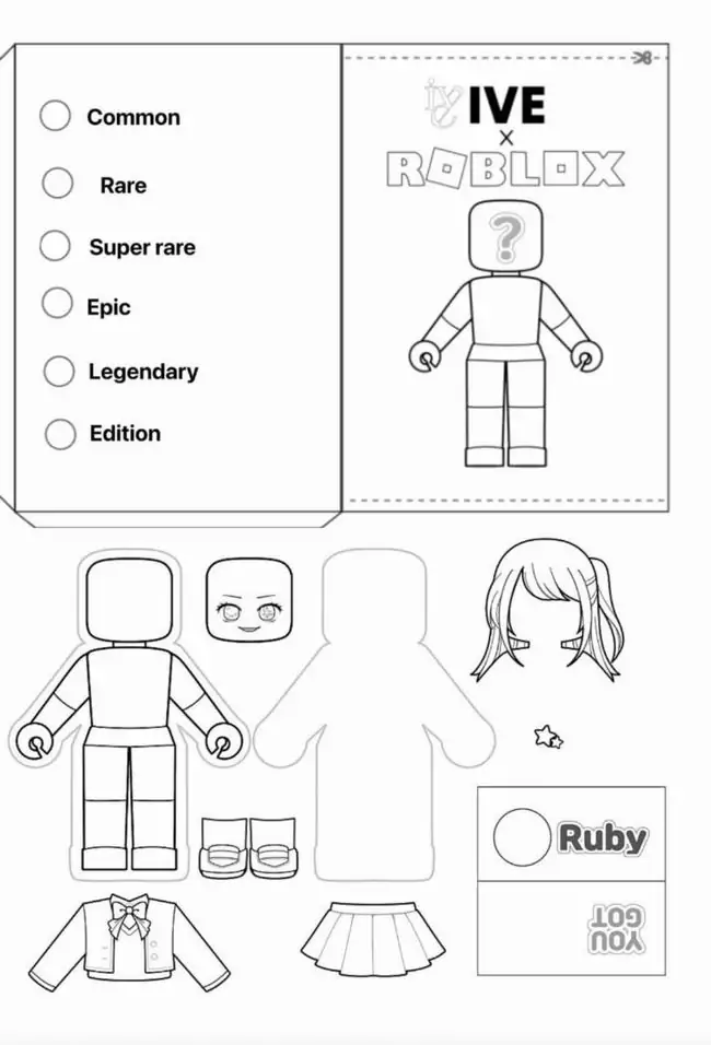 Bộ tranh tô màu búp bê giấy Roblox thay đồ thường gồm một nhân vật cơ bản đi kèm nhiều váy áo, tóc, mũ, giày, thú cưng, cánh hoặc phụ kiện trang trí trên cùng bộ giấy. Nét vẽ rõ, dễ tô, dễ cắt dán nên rất hợp cho giờ chơi tại nhà hoặc hoạt động cuối tuần.