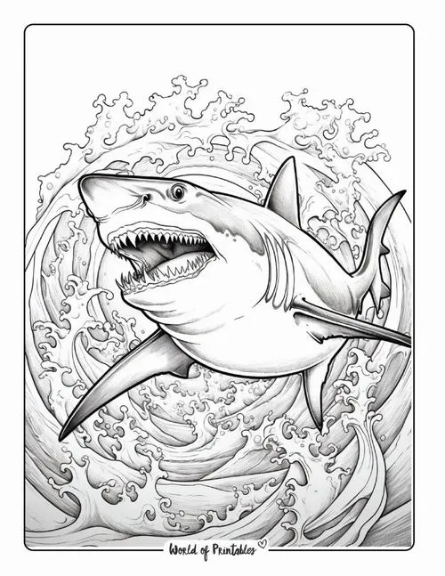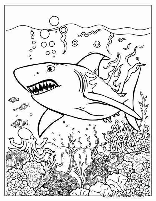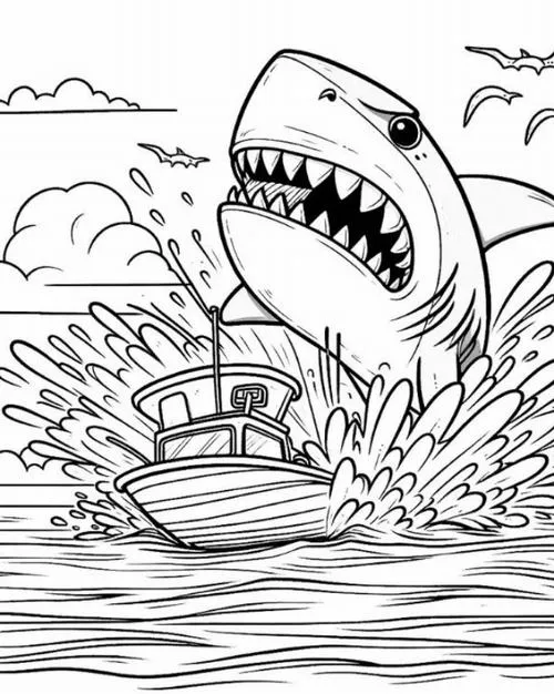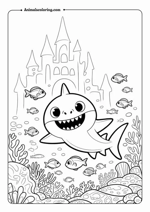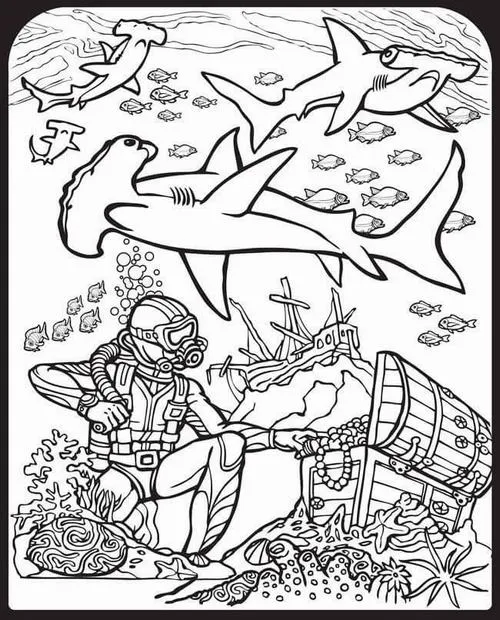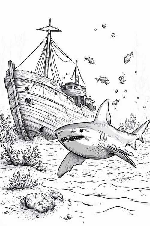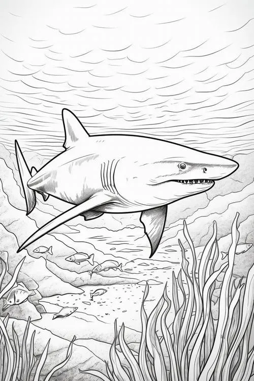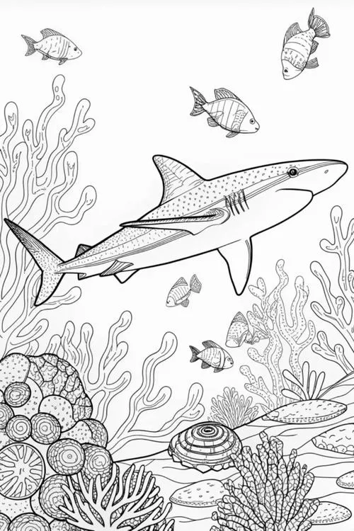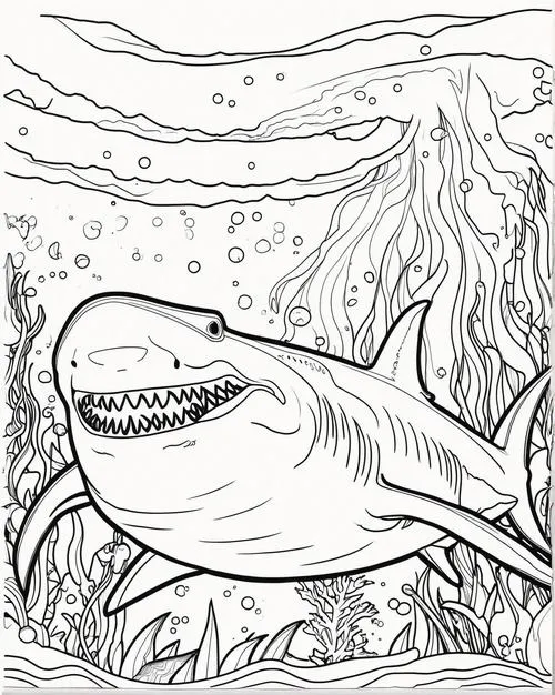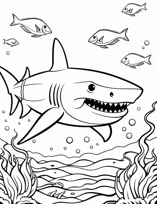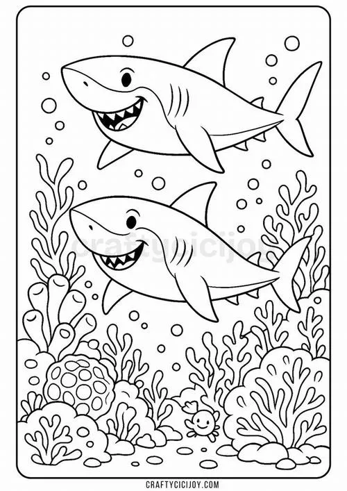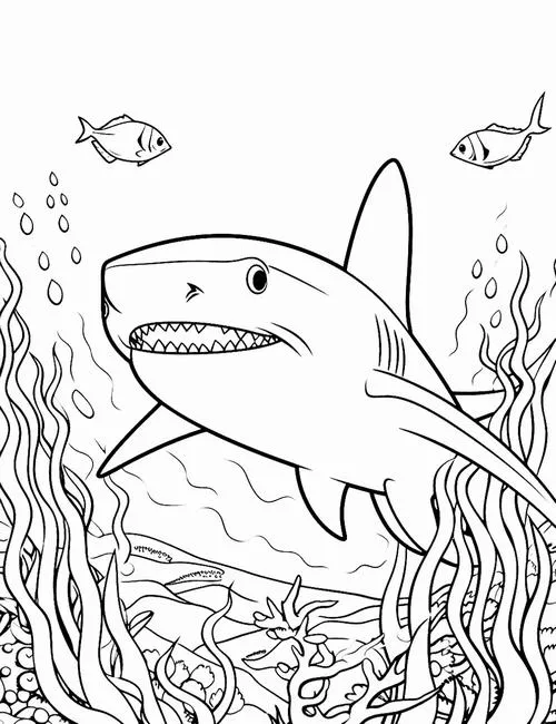 Bộ tranh tô màu cá mập gồm nhiều mẫu từ hình vẽ cá mập chưa tô màu đơn giản cho bé mới tập, đến tranh đen trắng chủ đề cá mập có rạn san hô, tàu ngầm, mỏ neo, vỏ ốc và sóng biển cho bé lớn hơn. Có mẫu cá mập trắng đại dương, cá mập đầu búa, cá mập voi, Megalodon và cả Baby Shark vui nhộn. Nét vẽ rõ, khoảng trống hợp lý, rất dễ tô bằng bút sáp, chì màu hay màu nước.