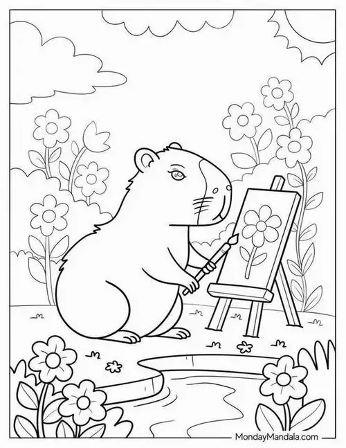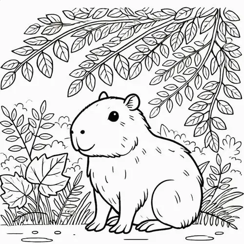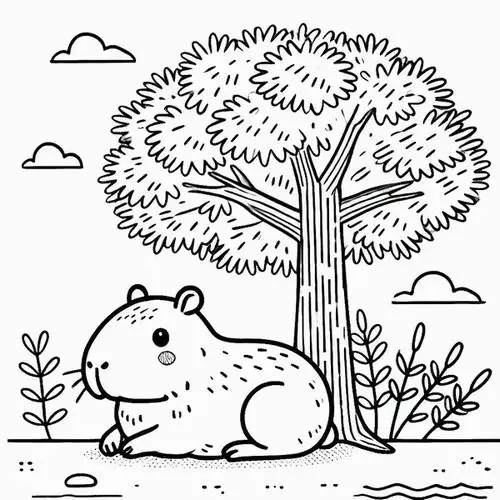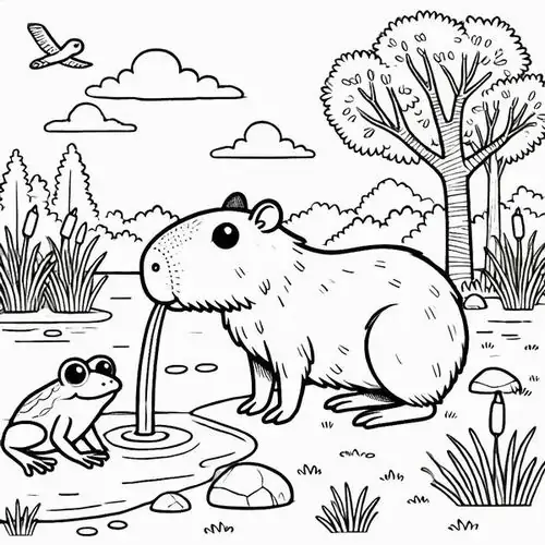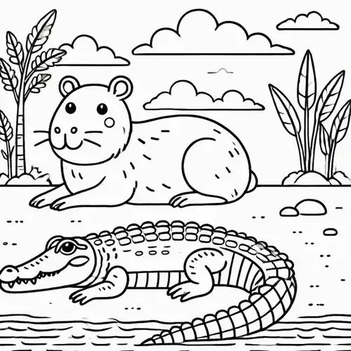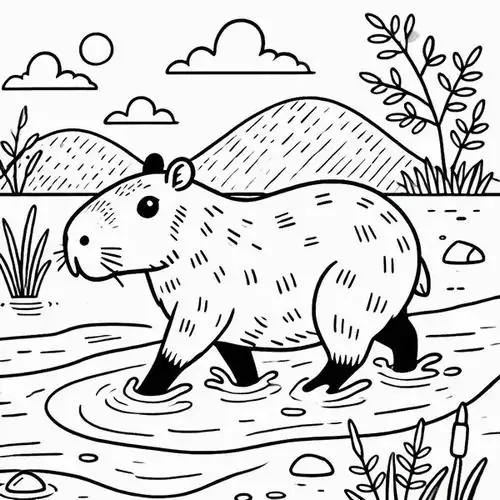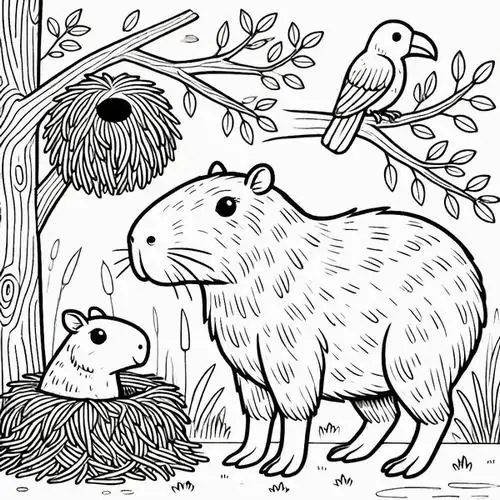 Bộ tranh tô màu Capybara thường xoay quanh những bối cảnh rất cuốn hút như Capybara ăn cỏ, tắm nắng trên bờ, ngâm mình trong nước, đi theo bầy đàn, chơi cùng chim chóc hay thư giãn giữa đầm lầy nhiệt đới.