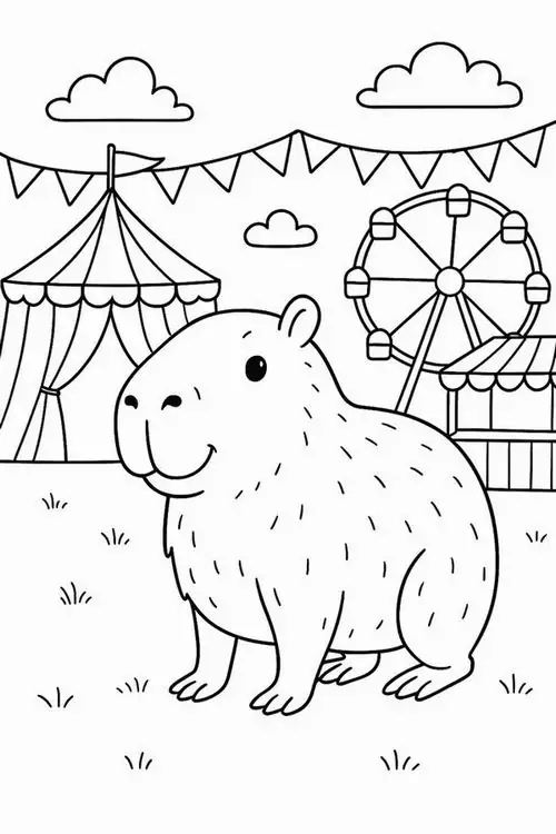 Điểm đặc trưng của Capybara là thân hình tròn trịa, đầu vuông, mũi to, tai nhỏ, chân có màng bơi và bộ lông thô màu nâu đỏ hoặc xám nâu. Chủ đề này hợp với bé mầm non lớn, tiểu học và cả các bạn nhỏ thích động vật hiền lành, dễ nhận biết.