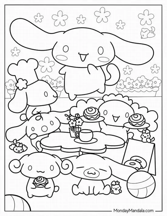 Bộ tranh bé tập tô màu Cinnamoroll thường xoay quanh nhiều khung cảnh rất dễ thương như Cafe Cinnamon, mây trắng bồng bềnh, tiệc bánh ngọt, giờ vui chơi với Milk, Mocha, Chiffon hay những khoảnh khắc bên Hello Kitty, My Melody. Có tranh nét đơn cho bé nhỏ, cũng có mẫu chi tiết hơn để bé lớn tập phối màu và quan sát sắc độ.