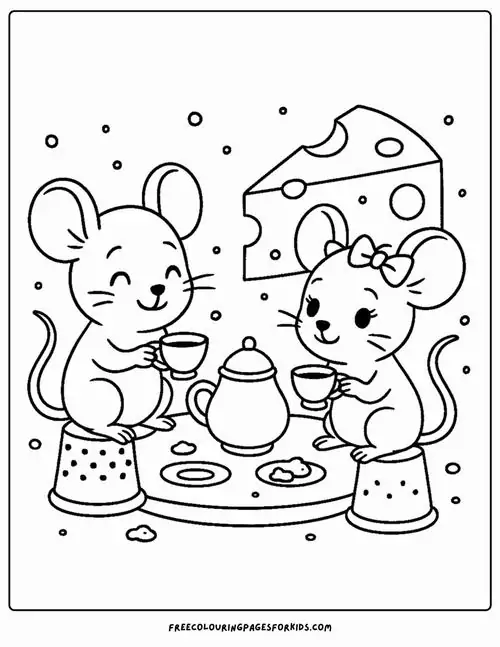 Bộ tranh tô màu con chuột gồm nhiều mẫu từ chú chuột nhỏ ngoài tự nhiên đến chuột hoạt hình như Mickey, Jerry, chuột hamster, gia đình nhà chuột hay cảnh chuột bên phô mai, hang nhỏ, bông lúa. Nét vẽ rõ, khoảng trống vừa phải nên bé mầm non, mẫu giáo và tiểu học đầu cấp đều dễ tô. Chủ đề này còn giúp trẻ nhận diện tai chuột, ria chuột, đuôi dài, răng cửa và những bối cảnh gần gũi trong thế giới động vật.