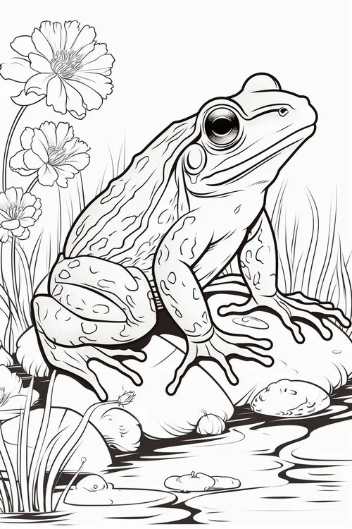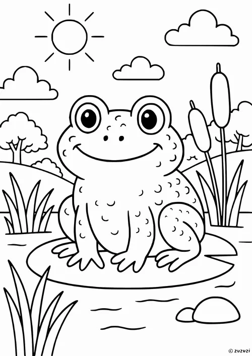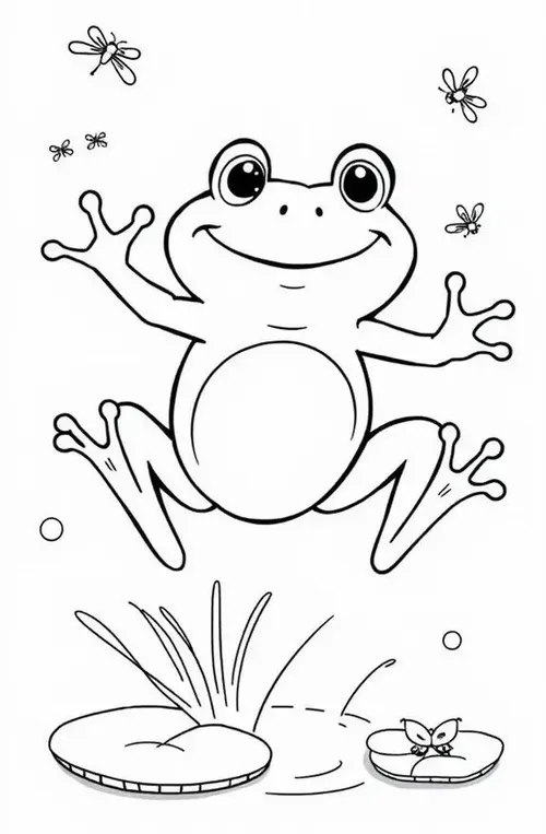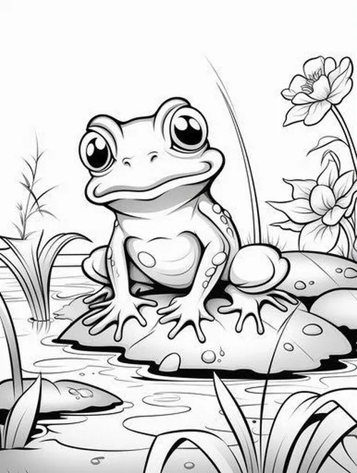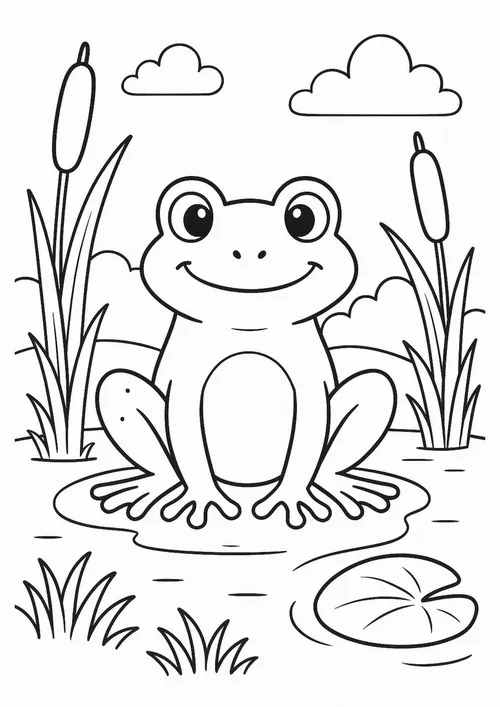 Tranh tô màu con ếch là những mẫu phác thảo về loài ếch trong tự nhiên hoặc phiên bản ếch hoạt hình vui nhộn, giúp bé nhận diện một sinh vật lưỡng cư rất quen thuộc. Ếch thường sống ở ao hồ, đầm lầy, bờ cỏ ẩm, có đôi mắt lồi tinh tường, chân sau khỏe để nhảy xa, ngón chân có màng để bơi, miệng rộng và chiếc lưỡi dính bắt mồi cực nhanh. Màu sắc nổi bật nhất thường là xanh lá, vàng chanh, nâu đất, đốm đen, đôi khi pha chút trắng ngà ở bụng. Chủ đề này còn mở ra nhiều kiến thức hay về trứng ếch, nòng nọc, chu kỳ sống và vai trò của ếch trong hệ sinh thái.