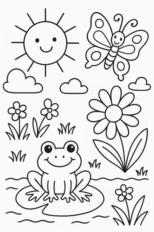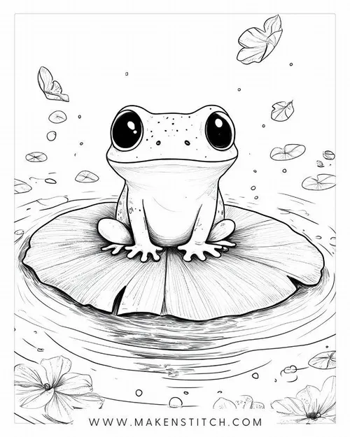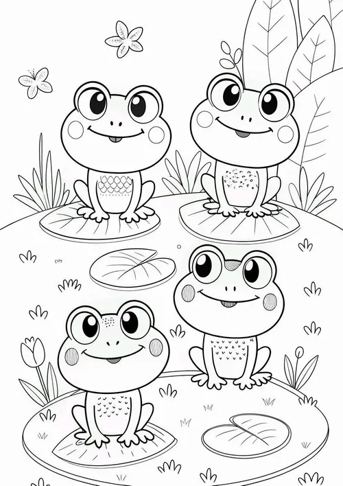 Chú ếch con nhảy một cái là vào ngay thế giới tưởng tượng của bé. Có hôm là ếch xanh trên lá sen, có hôm lại là ếch hoạt hình giữa cơn mưa vui nhộn. Chủ đề này càng tô càng thích, nhìn tranh xong cứ muốn lấy thêm trang khác để tô tiếp.
