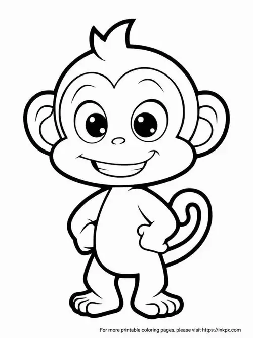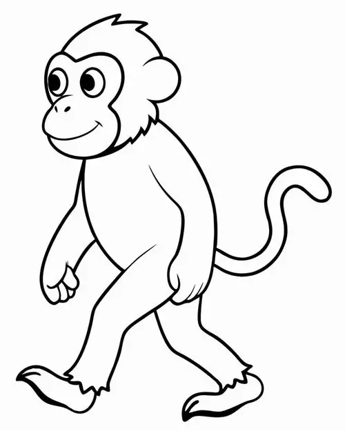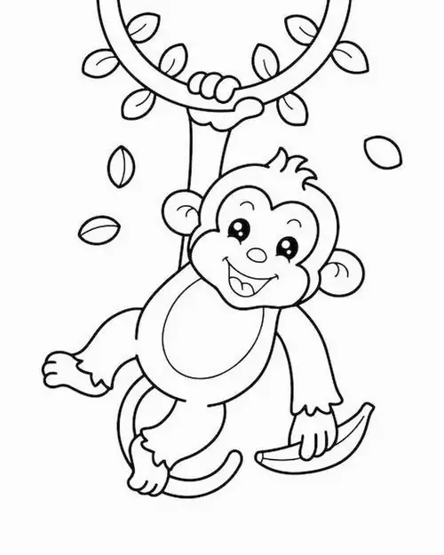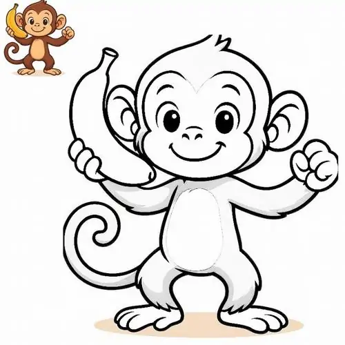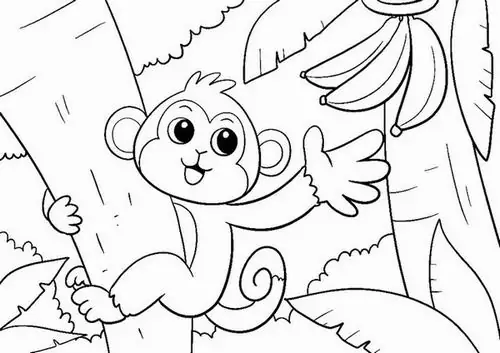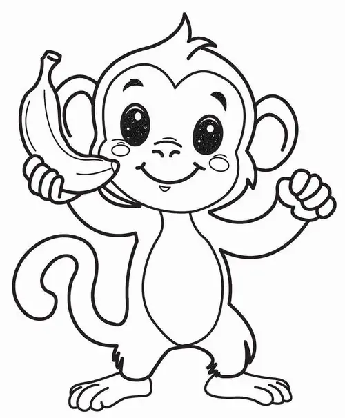 Tranh tô màu con khỉ là dạng tranh nét đen mô tả loài khỉ trong nhiều tư thế vui nhộn như leo cây, ôm chuối, chuyền cành, chăm con hay vui đùa giữa rừng nhiệt đới. Ngoại hình của chúng thường có bộ lông nâu, xám, đen hoặc vàng cam, khuôn mặt tinh anh, mắt sáng, tai hai bên và chiếc đuôi dài giúp giữ thăng bằng. Chủ đề này phù hợp với bé từ 3 tuổi đến 9 tuổi vì dễ nhận biết, gần gũi và kích thích trí tò mò về động vật hoang dã.