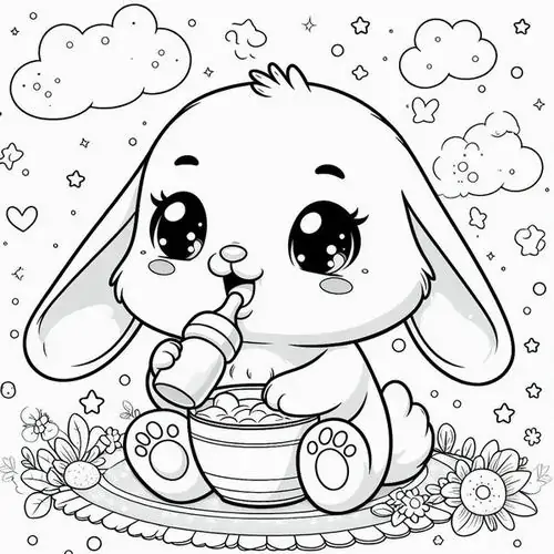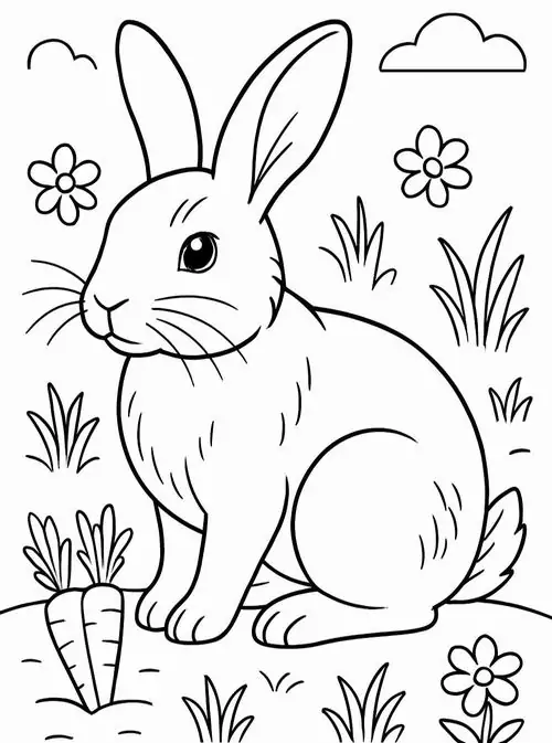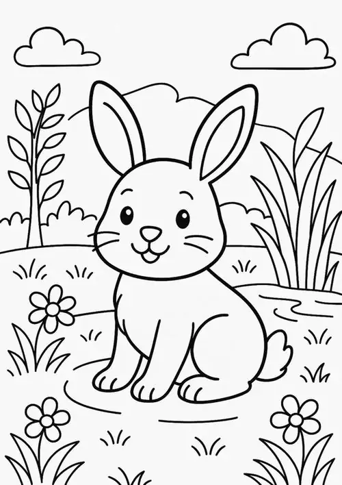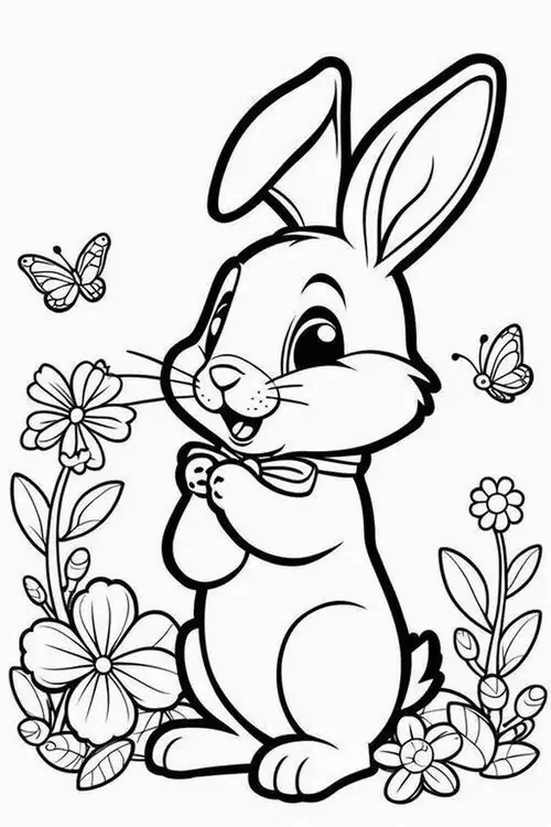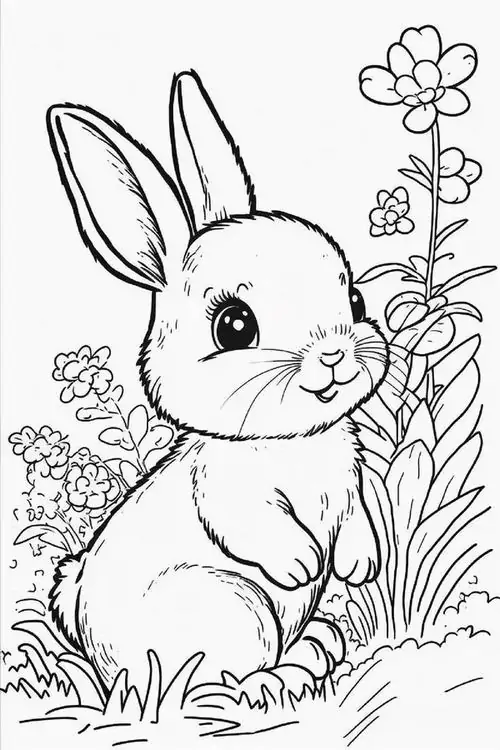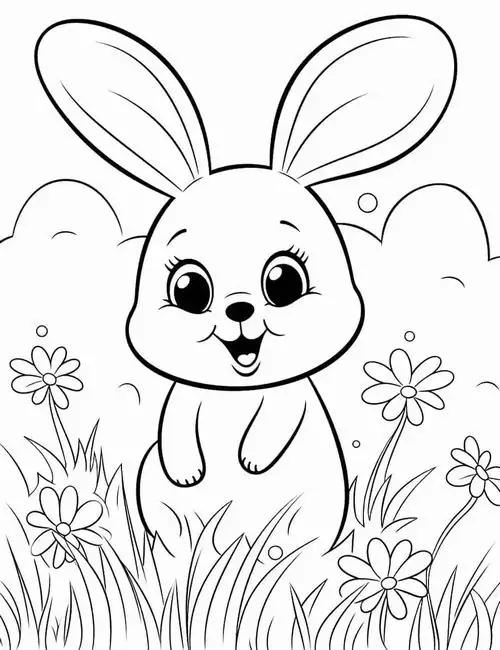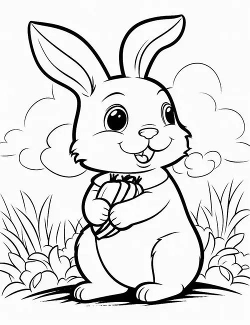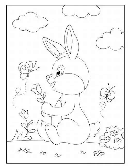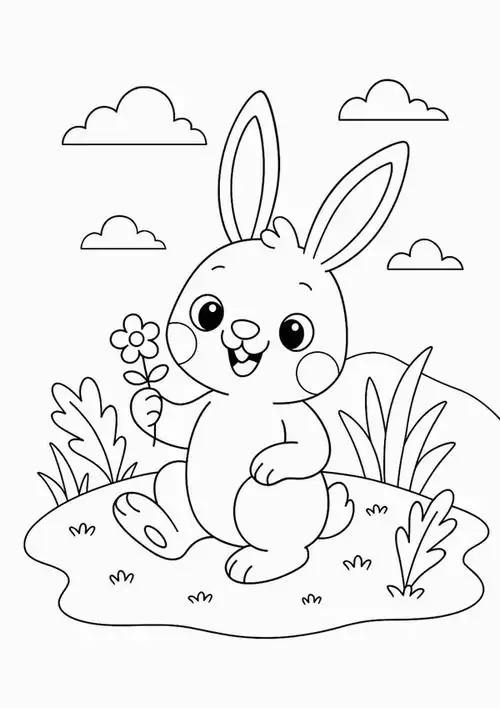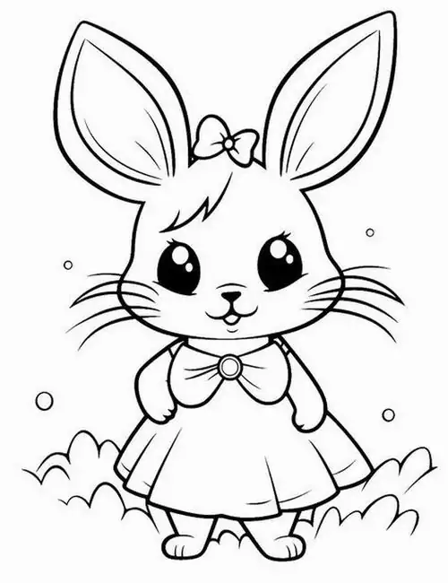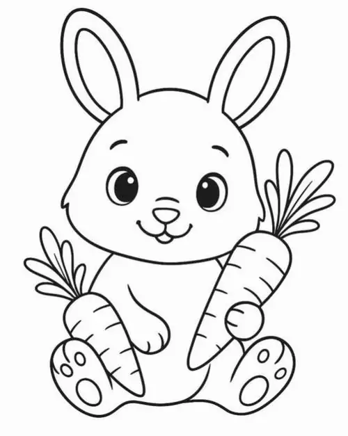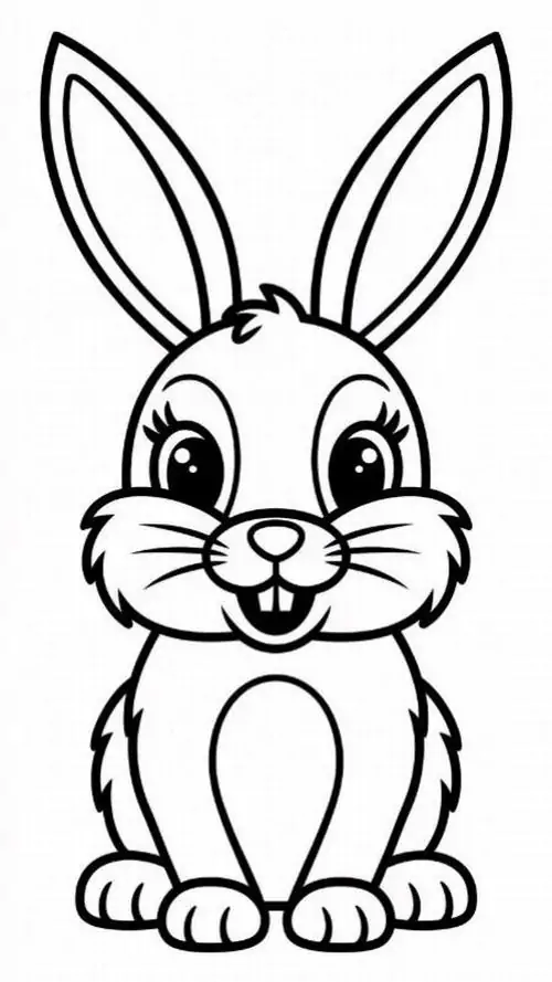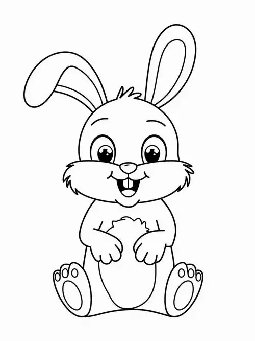 Con thỏ trong tranh tô màu thường được thể hiện bằng những đường nét tròn mềm và cực kỳ thân thiện với trẻ nhỏ. Đặc trưng dễ nhận ra nhất là đôi tai dài vểnh cao, đôi mắt tròn nằm hai bên đầu, chiếc mũi nhỏ nhấp nhô và cái đuôi ngắn xù như cục bông.