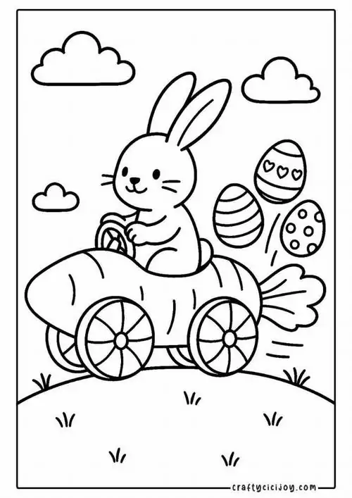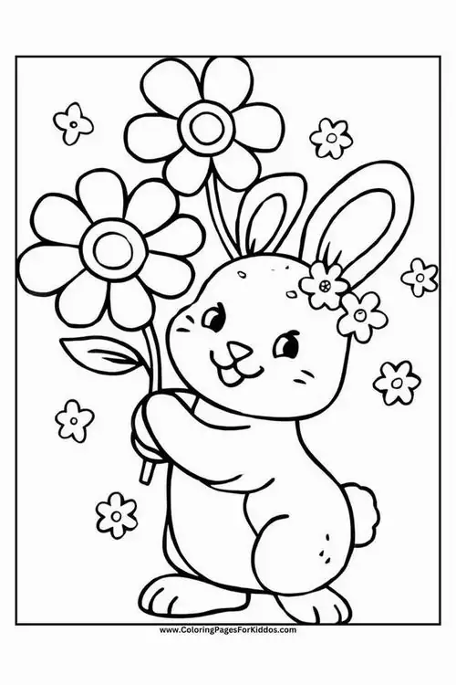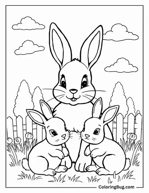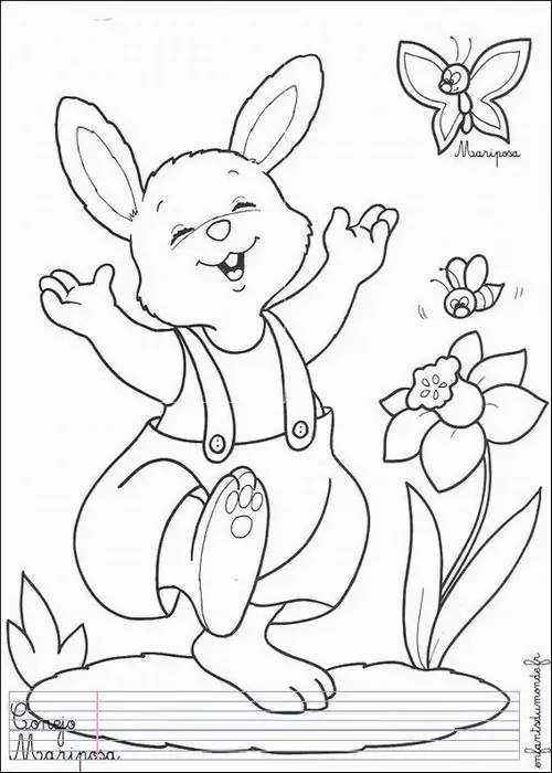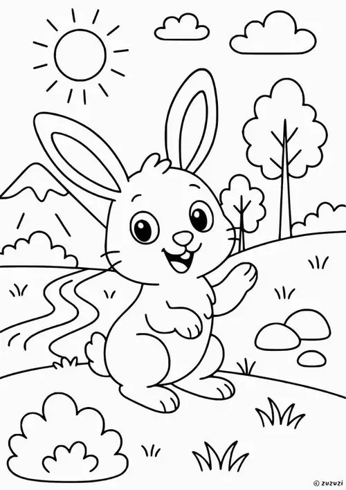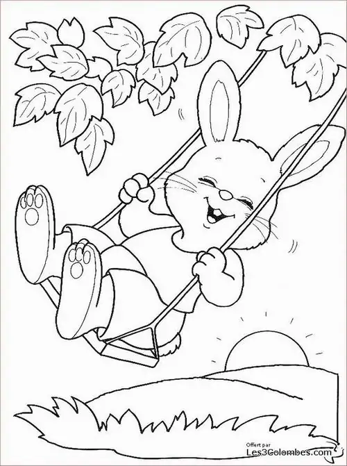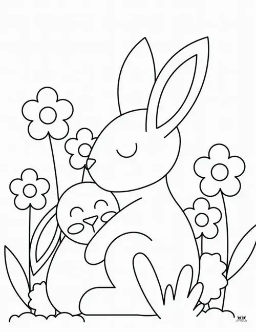 Bộ tranh tô màu con thỏ gồm nhiều mẫu gần gũi và giàu hình ảnh quen thuộc như chú thỏ ăn cà rốt, thỏ con nhảy trên đồng cỏ, mẹ thỏ chăm con, thỏ trốn trong hang đất, thỏ giữa mùa xuân và thỏ chơi trong vườn hoa.