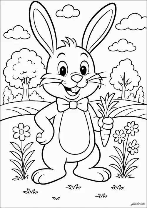 - Nếu muốn bức tranh nổi bật, hãy chọn màu lông thỏ dịu nhẹ và để cà rốt, nơ áo, hoa cỏ hoặc nền trời làm điểm nhấn.