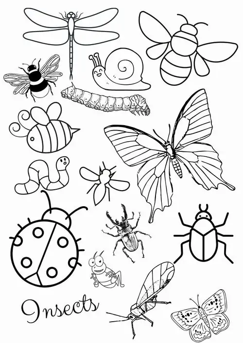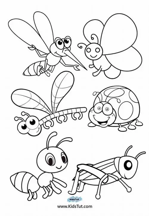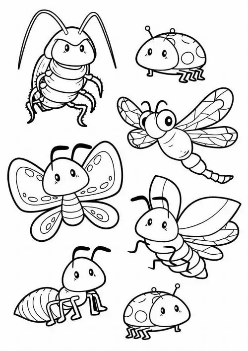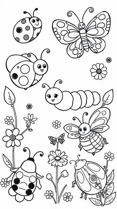 Bộ tranh bé tập tô màu côn trùng thường gồm nhiều mẫu từ dễ đến vừa phải, có hình kiến, ong, bướm, bọ rùa, châu chấu, bọ ngựa và chuồn chuồn. Chủ đề động vật nhỏ này khá hợp với bé từ 4 đến 9 tuổi, nhất là các bạn nhỏ đang thích khám phá cây cỏ, vườn hoa và những sinh vật li ti quanh mình.