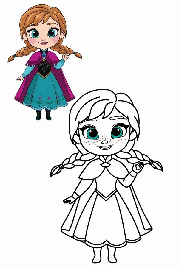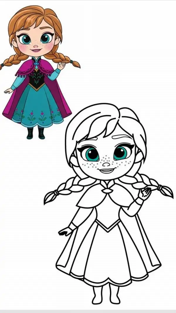 Có một điều rất dễ thương là khi bé tô màu công chúa Anna, khuôn mặt cũng thường vui lên theo. Có lẽ vì Anna luôn mang cảm giác thân thiện, lí lắc và tràn đầy hi vọng. Nhìn mái tóc bím đỏ, đôi mắt xanh và nụ cười ấm áp ấy, ai cũng thấy gần gũi. Arte y Cultura TV đã gom lại bộ tranh này như một món quà nhỏ để giờ chơi của bé thêm rộn ràng và nhiều cảm hứng hơn.