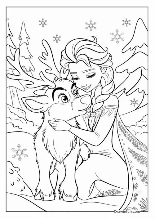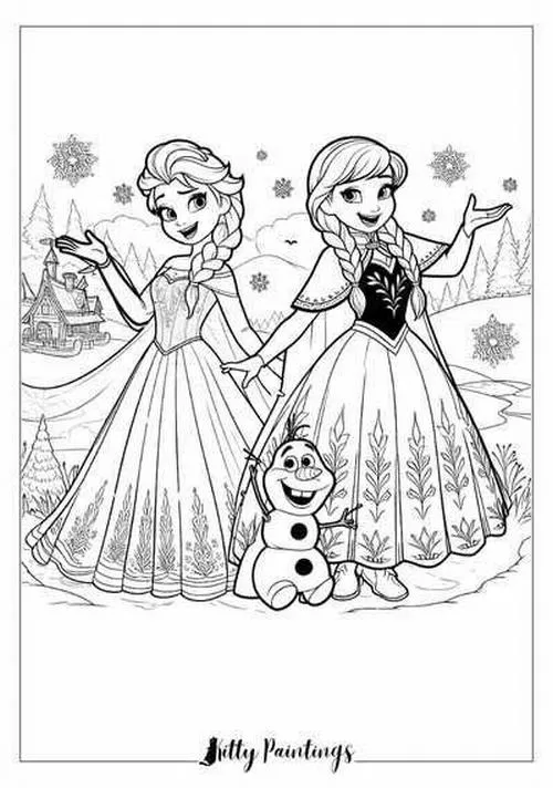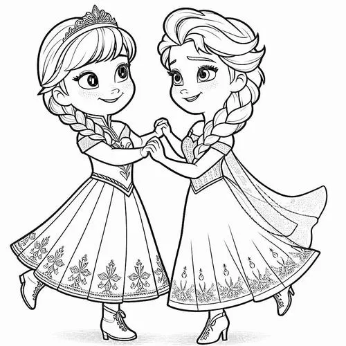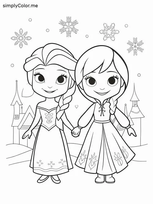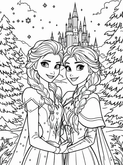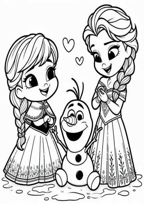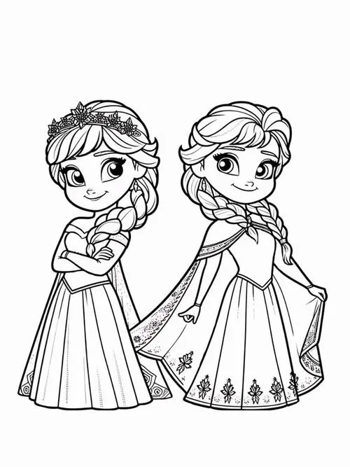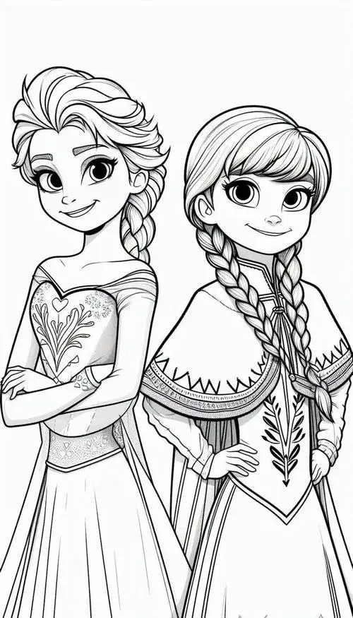 Bộ tranh tô màu công chúa Elsa và Anna thường gồm nhiều khung cảnh quen thuộc như hai chị em đứng cạnh nhau, Elsa trong lâu đài băng, Anna vui đùa cùng Olaf hay cả nhóm bên Kristoff và Sven. Điểm nổi bật là đường nét rõ, váy áo chi tiết, khuôn mặt nhân vật dễ nhận diện nên bé tô rất thích. Bộ tranh công chúa này hợp với bé gái hơn vì mang màu sắc công chúa, nhưng nhiều bé trai mê Frozen vẫn tô rất hào hứng.