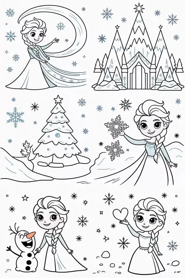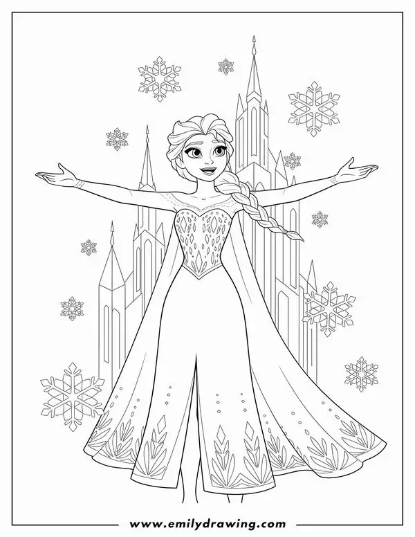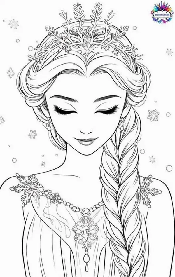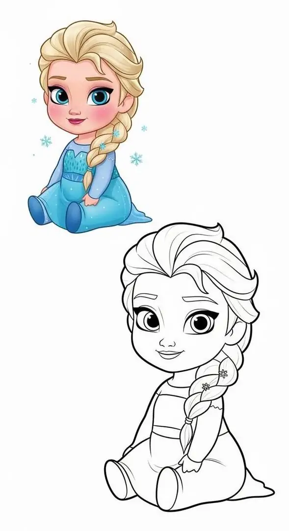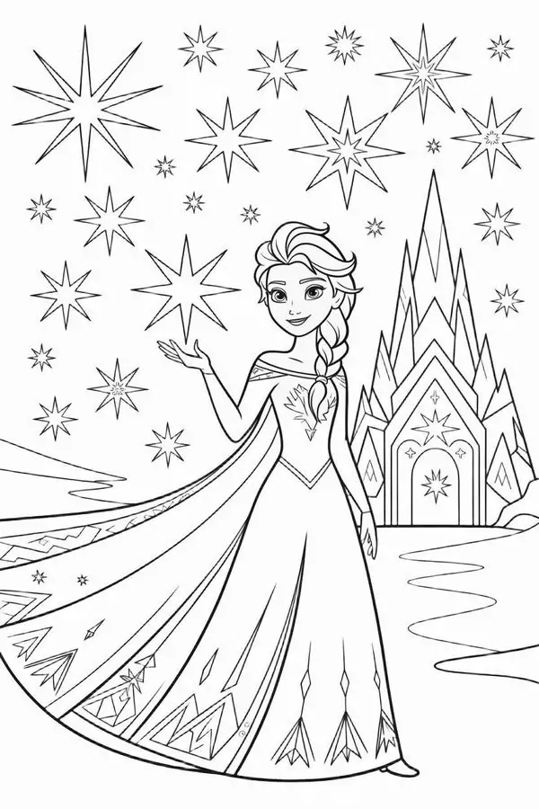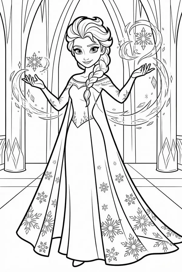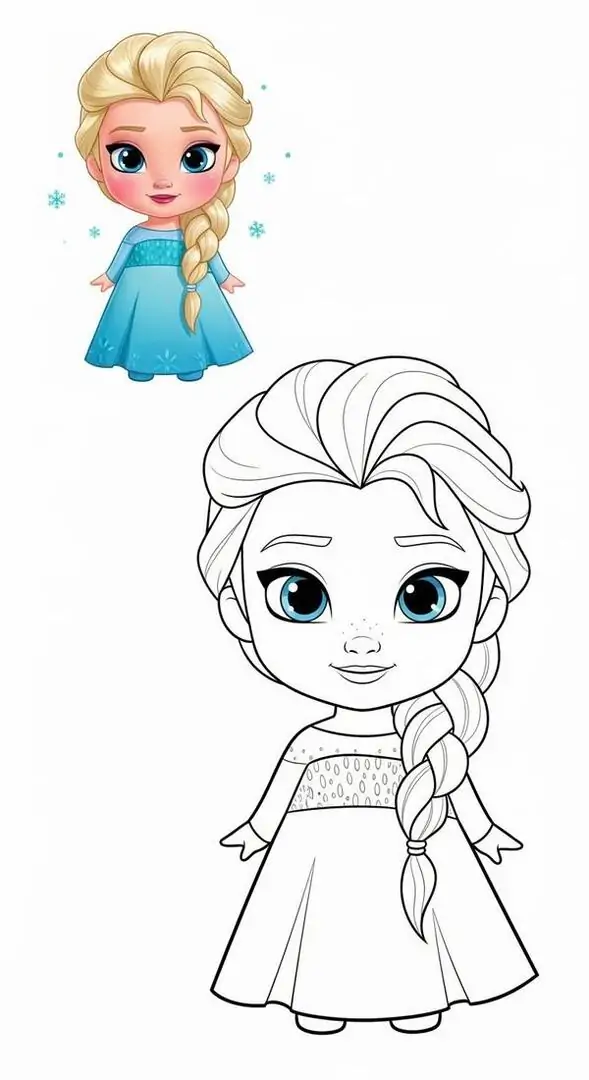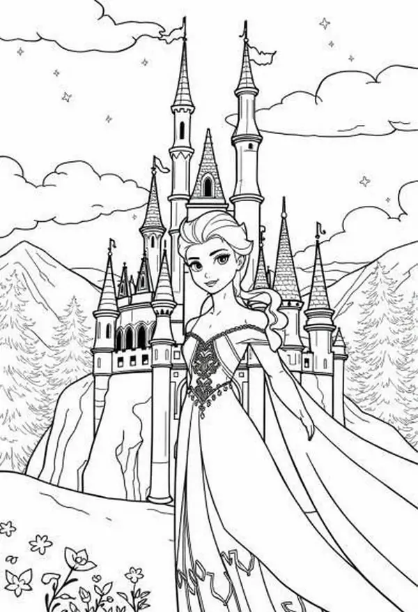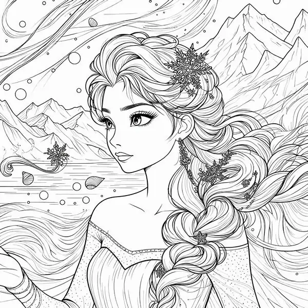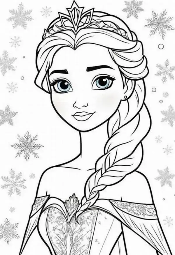 Tranh tô công chúa Elsa lấy cảm hứng từ nhân vật nổi tiếng trong phim Frozen của Disney, nữ hoàng Arendelle sở hữu khả năng điều khiển băng tuyết bẩm sinh. Ở các bản vẽ nét mảnh, Elsa thường xuất hiện với bím tóc vàng bạch kim lệch vai, đôi mắt xanh dương trong veo, làn da trắng sáng và bộ váy xanh lấp lánh như kết tinh từ hàn băng. Chủ đề này còn gắn với lâu đài băng, phép thuật tuyết, bài hát Let It Go và hành trình trưởng thành đầy cảm xúc của Elsa bên cạnh Anna, Olaf, Kristoff cùng Sven.