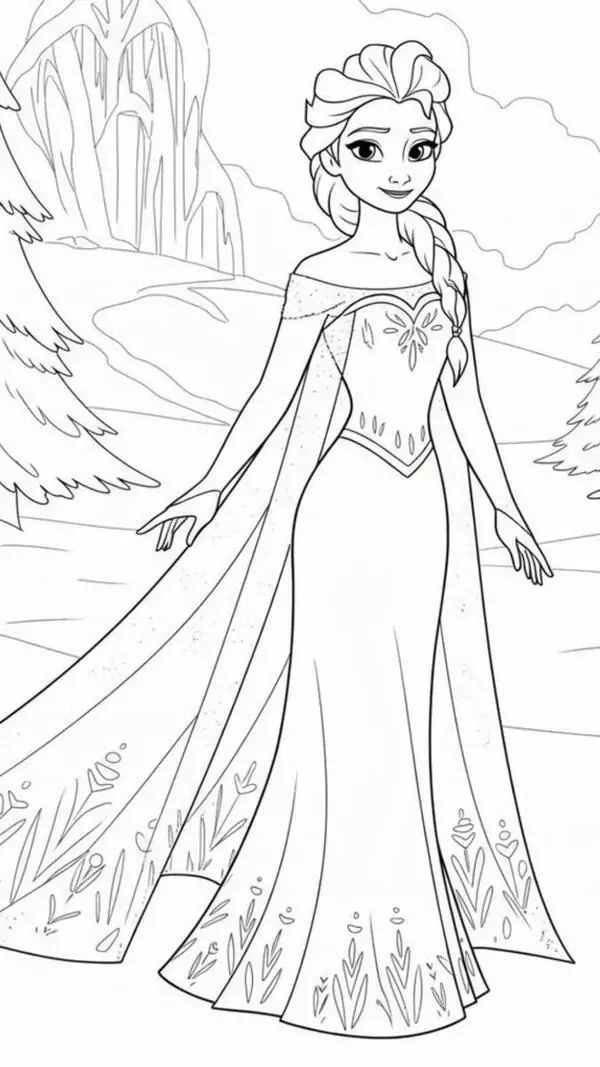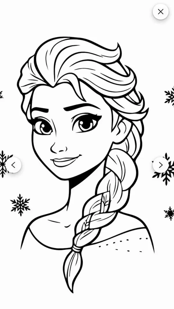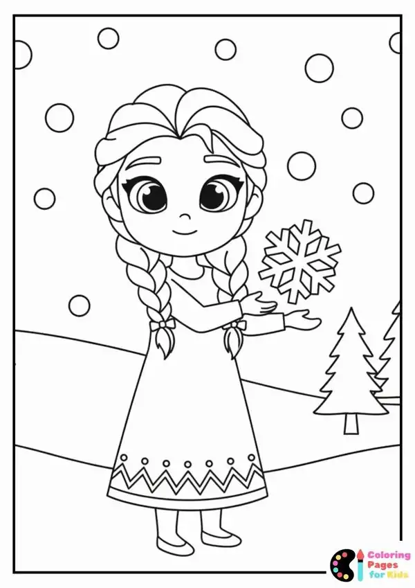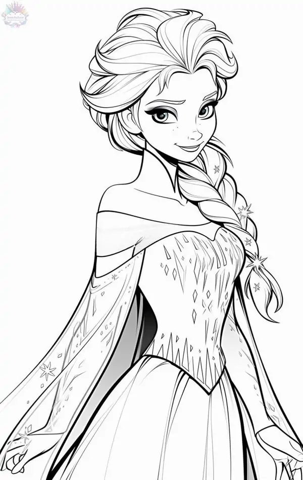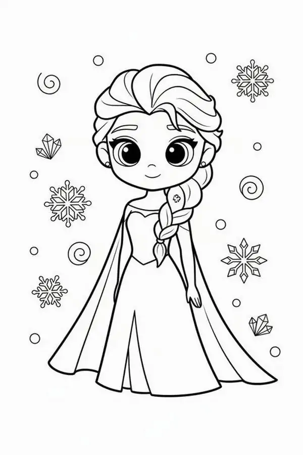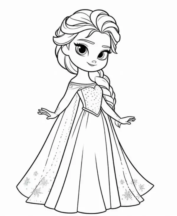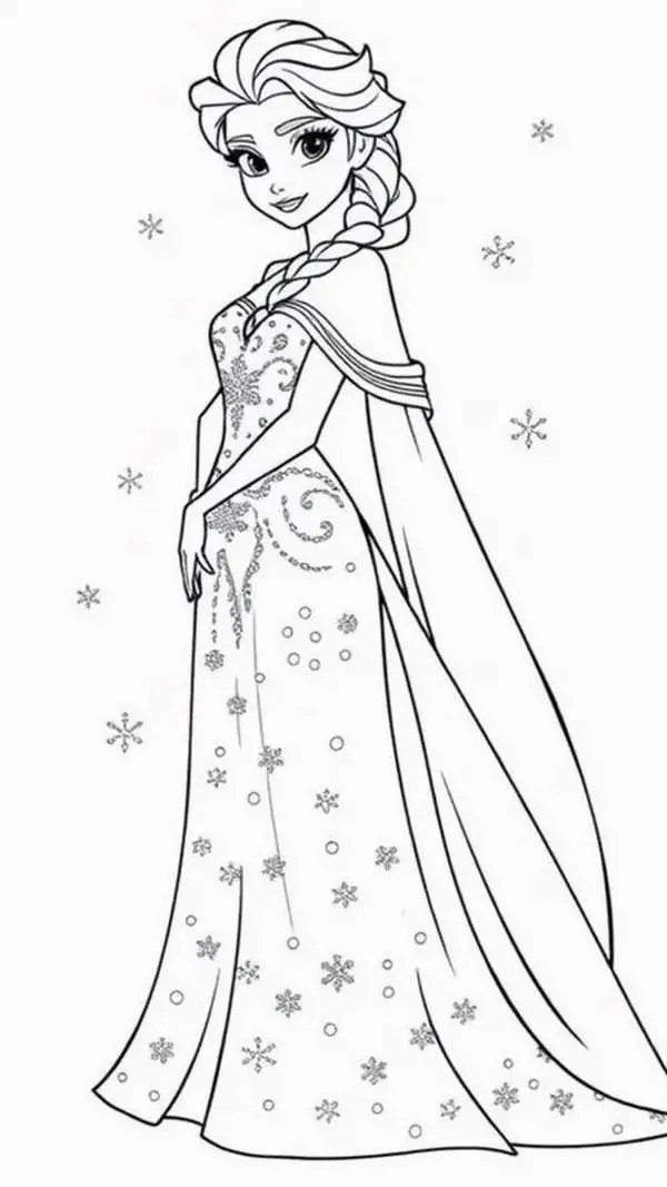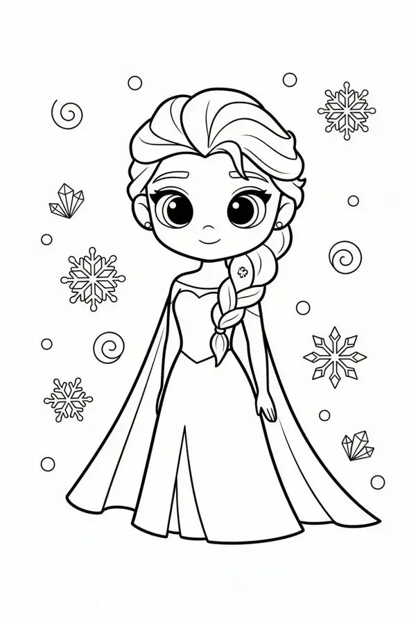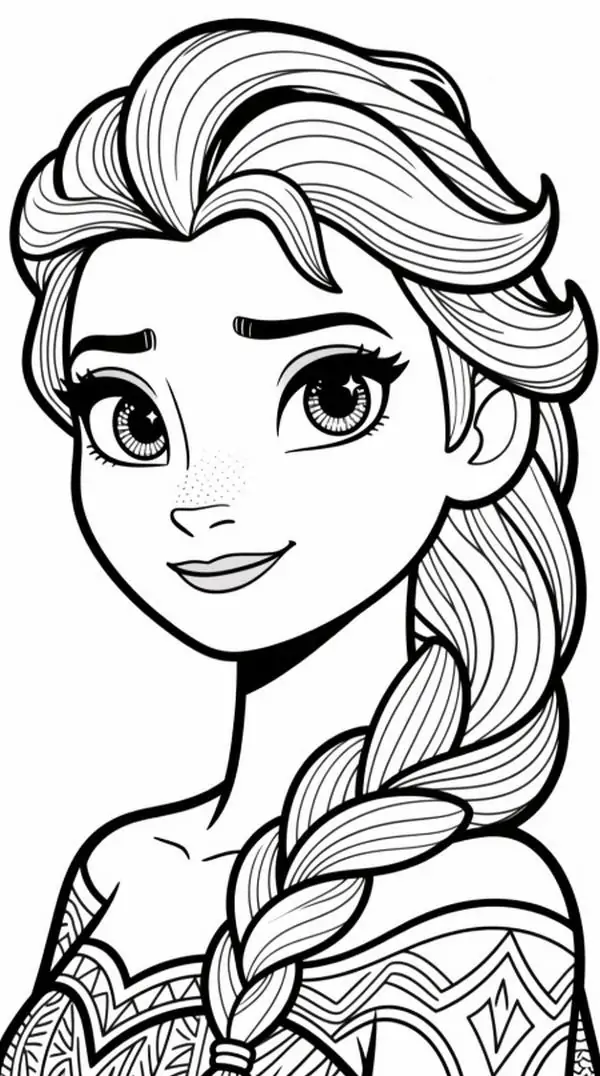 Tranh tô công chúa Elsa lấy cảm hứng từ nhân vật nổi tiếng trong phim Frozen của Disney, nữ hoàng Arendelle sở hữu khả năng điều khiển băng tuyết bẩm sinh. Ở các bản vẽ nét mảnh, Elsa thường xuất hiện với bím tóc vàng bạch kim lệch vai, đôi mắt xanh dương trong veo, làn da trắng sáng và bộ váy xanh lấp lánh như kết tinh từ hàn băng. Chủ đề này còn gắn với lâu đài băng, phép thuật tuyết, bài hát Let It Go và hành trình trưởng thành đầy cảm xúc của Elsa bên cạnh Anna, Olaf, Kristoff cùng Sven.
